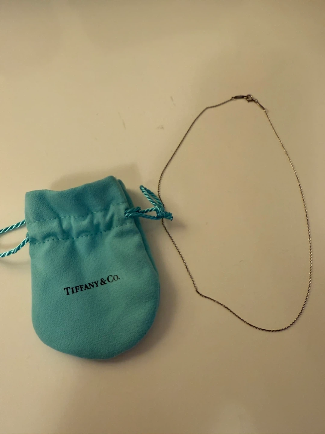 Selling a Tiffany & Co. silver necklace. It comes with its original pouch. It's in great condition and ready for a new home