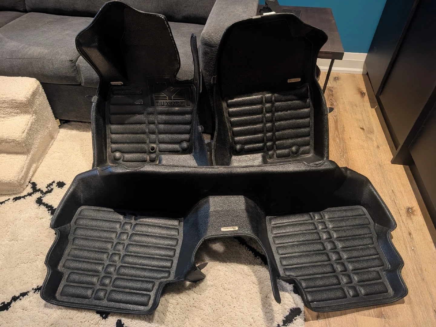 Selling a set of Tuxmat car floor mats in black that I purchased for a 2019 Mazda CX-5. They're in good condition and will keep your car's interior clean and protected! Driver's seat mat looks the most "used" with the mats for the back seats looking like new.