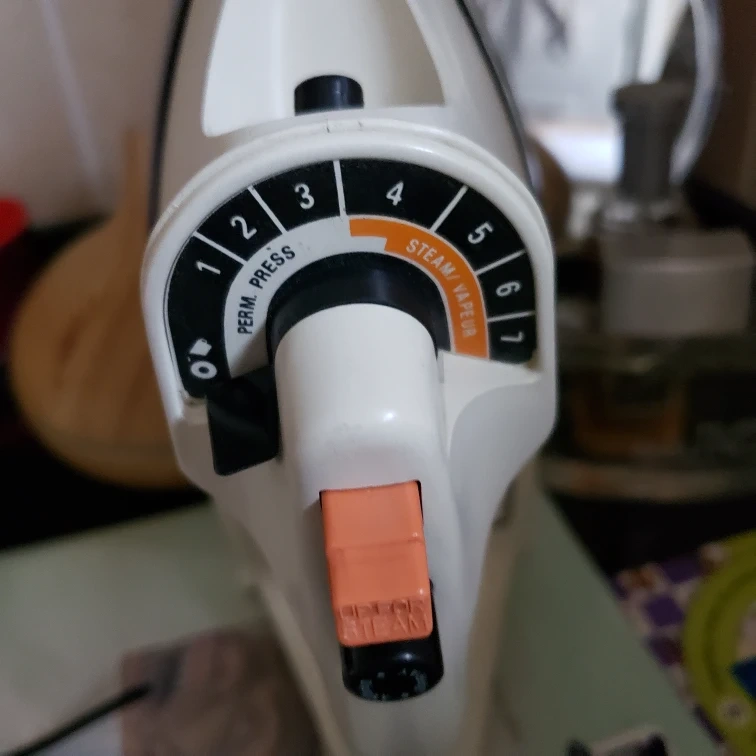 make an offer for this vintage steam iron in good condition. It has a dial with settings from 0 to 7 for different fabric types and steam levels. Perfect for your keeling your clothes and linens neat and smooth.