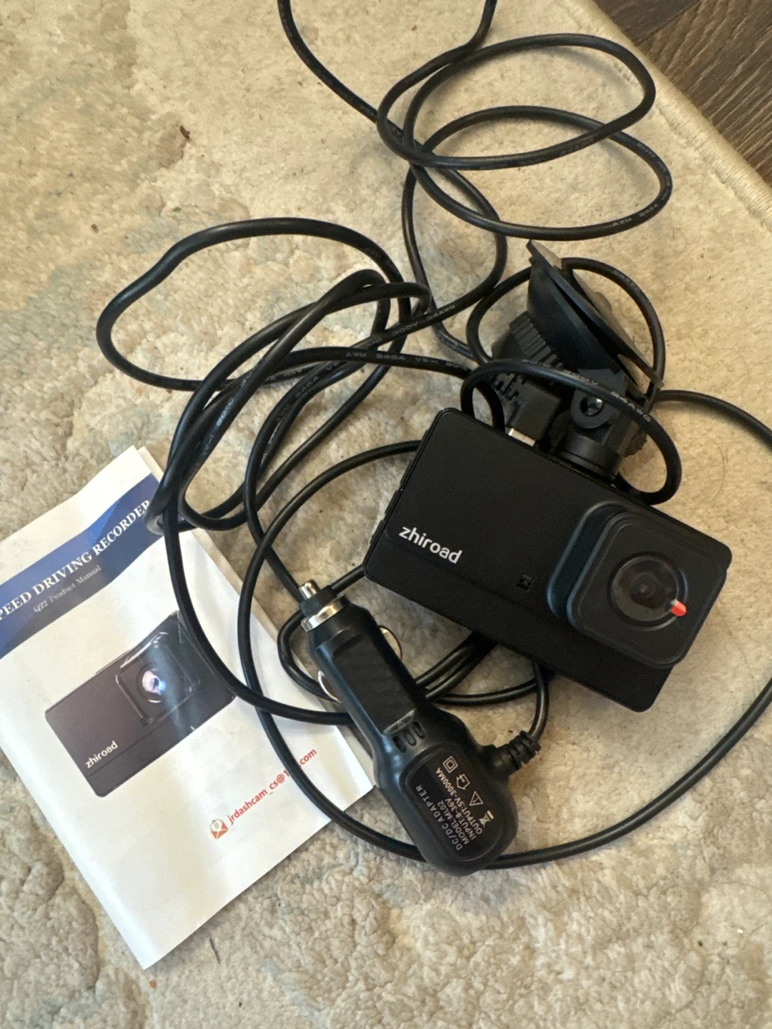 10Selling a Zhiroad dashcam in black. It comes with a DC/DC adapter. Model number is ML02