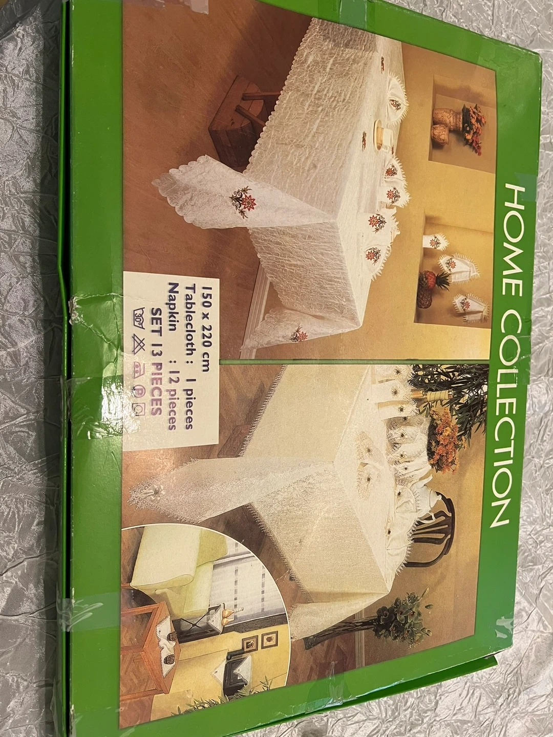 Home Collection tablecloth set, brand new in box! The set includes 1 tablecloth (150 x 220 cm) and 12 napkins