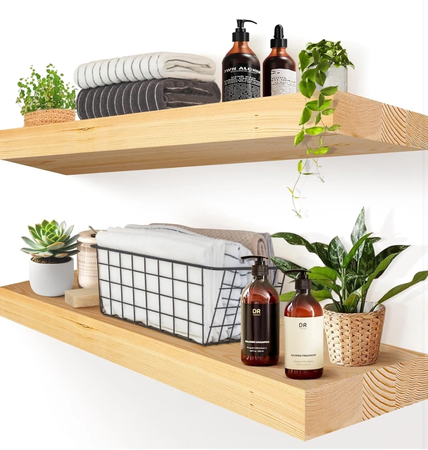 942 Pc Natural Pine Wooden Floating Shelves BNIB Wall Mounted (Natural, 24”) 24”L x 6.7”W & holds up to 40 lbs.