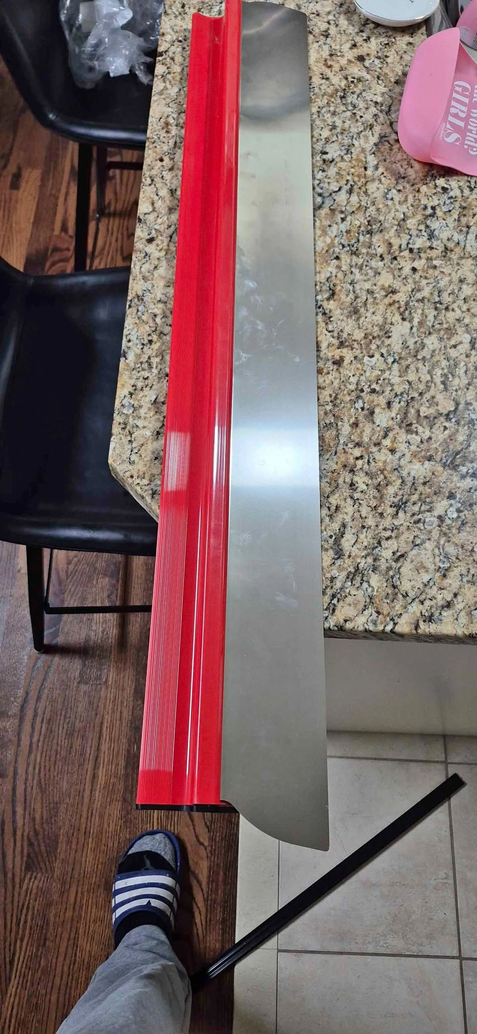10Get a smooth, professional finish every time with this 39.5-inch stainless steel drywall skim blade. Featuring a durable stainless steel blade and a lightweight red aluminum handle, this tool is perfect for spreading, leveling, and smoothing drywall compound, plaster, or stucco. Ideal for both professional contractors and DIY home projects. Features: Length: 39.5 inches (100 cm) High-quality stainless steel blade for smooth, even finishes Red anodized aluminum handle for strength and lightweight control Ideal for drywall, plaster, and finishing applications Easy to clean and maintain Designed for efficiency and comfort