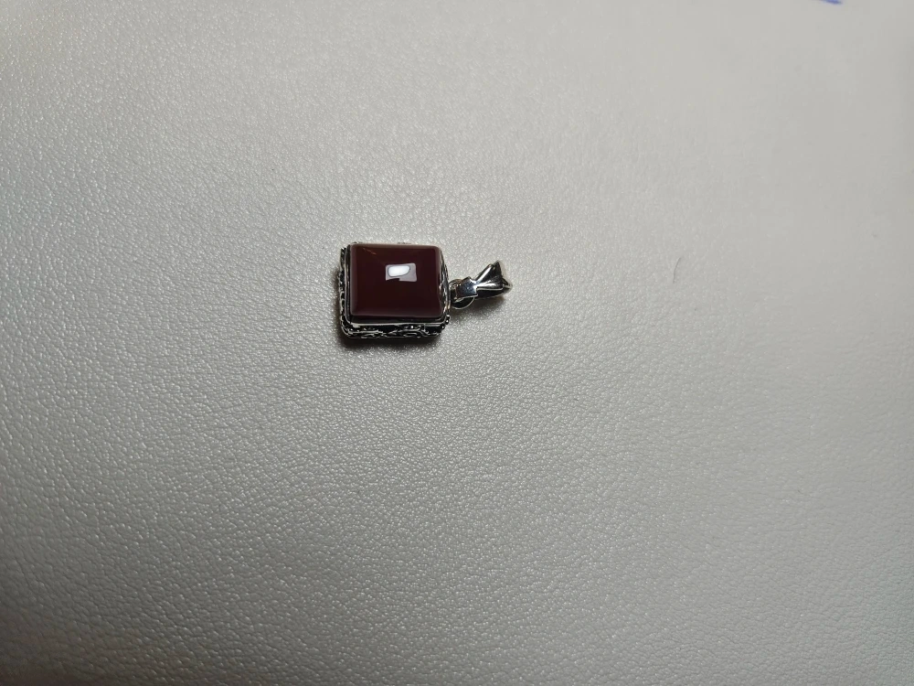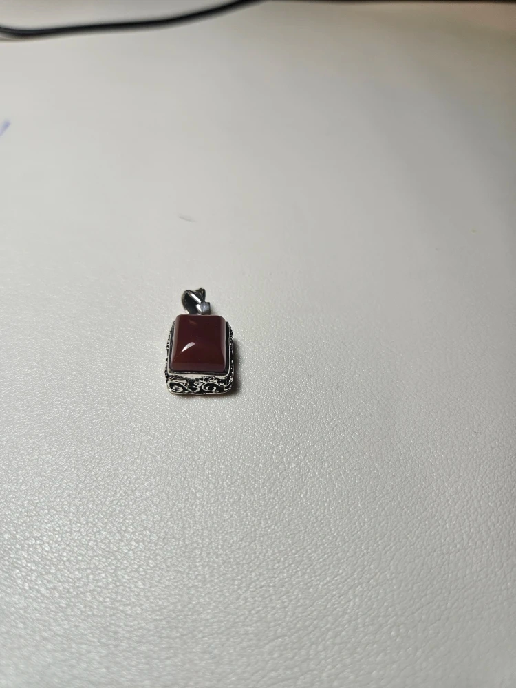 Selling a red stone pendant. The stone is a deep red colour and set in a decorative silver-tone metal. ready to add a pop of colour to any outfit