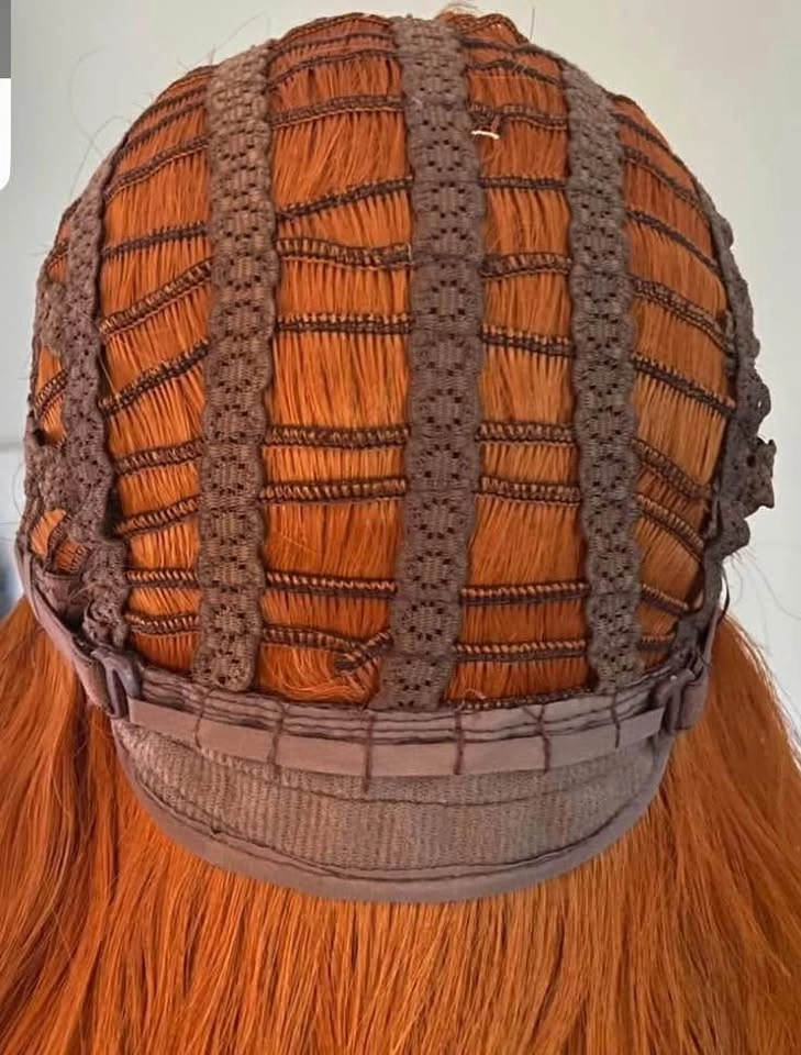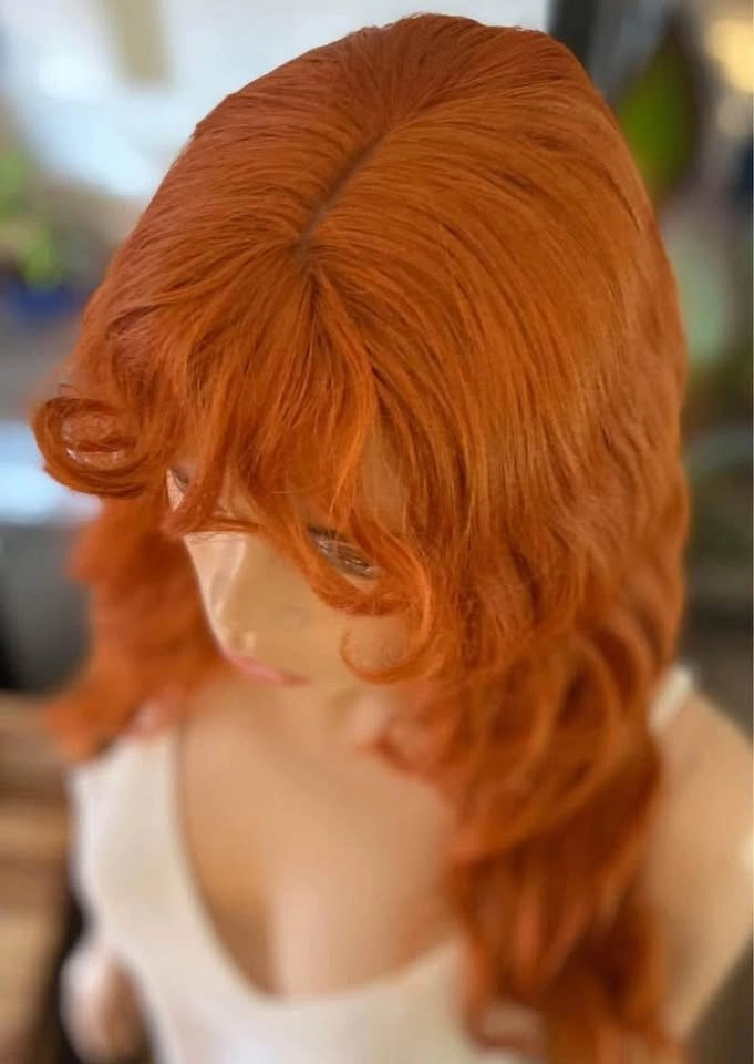 83Brand new & from a smk-free home Long, layered, wavy, fiery redhead, ginger orange red wig with straight parting and bangs Stretch lace cap is breathable and comfortable Inner elasticated adjustable straps One size fits most Pick up north end St Catharines Unable to meet or deliver