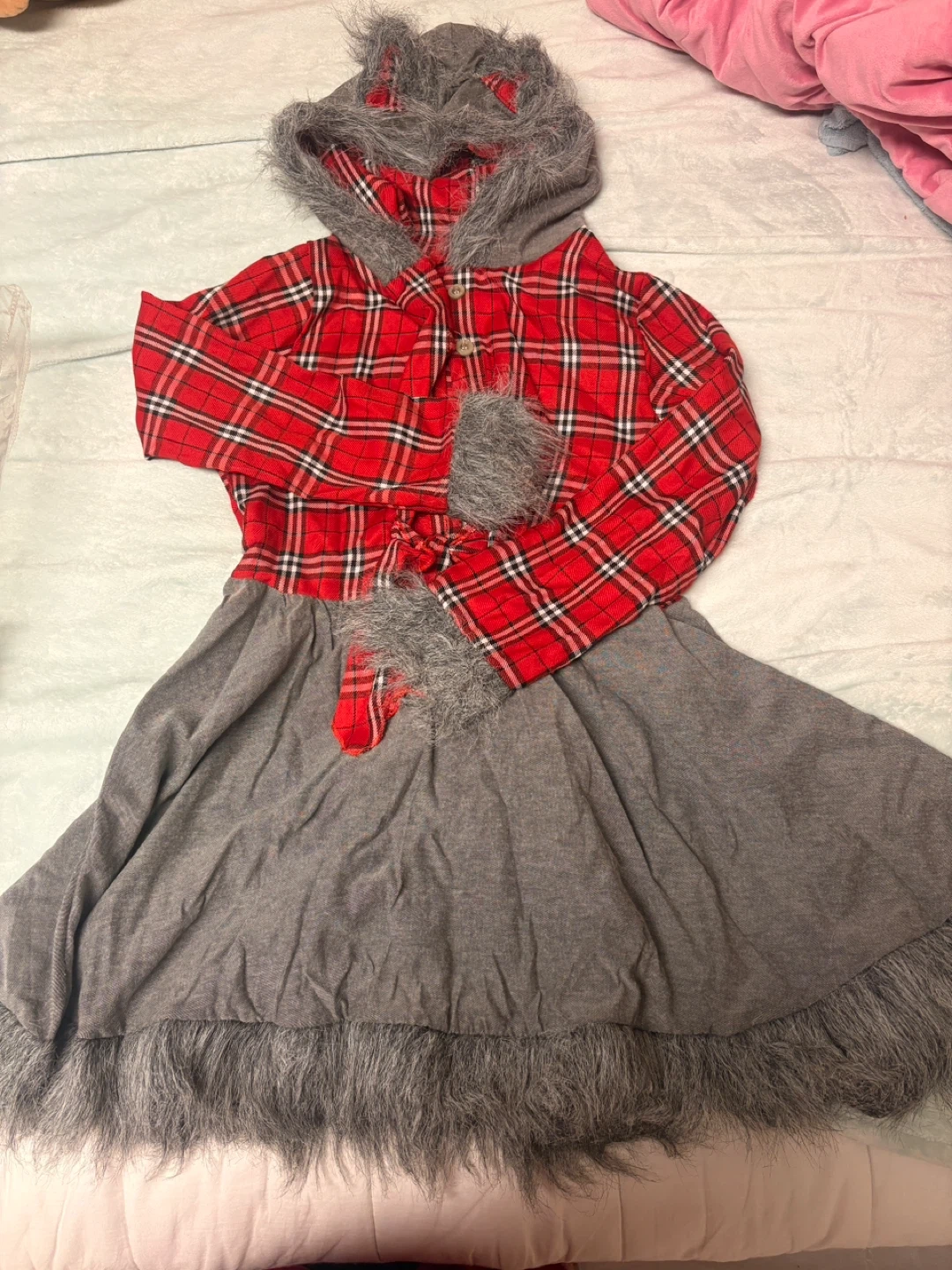68Selling a cute wolf costume! It includes a dress with a hood, a pair of gloves with paw prints, and leg warmers. XLarge (14~16years)Perfect for Halloween or dress-up!