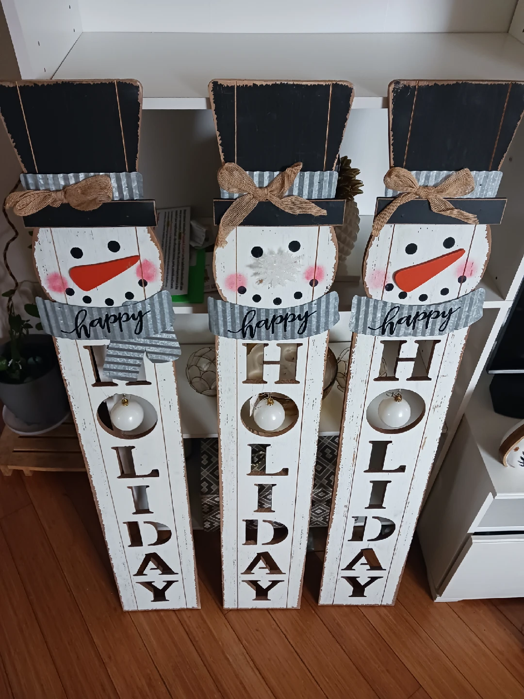 🎄 Wooden Snowman “Happy Holiday” Porch Signs – Set of 3 🎄