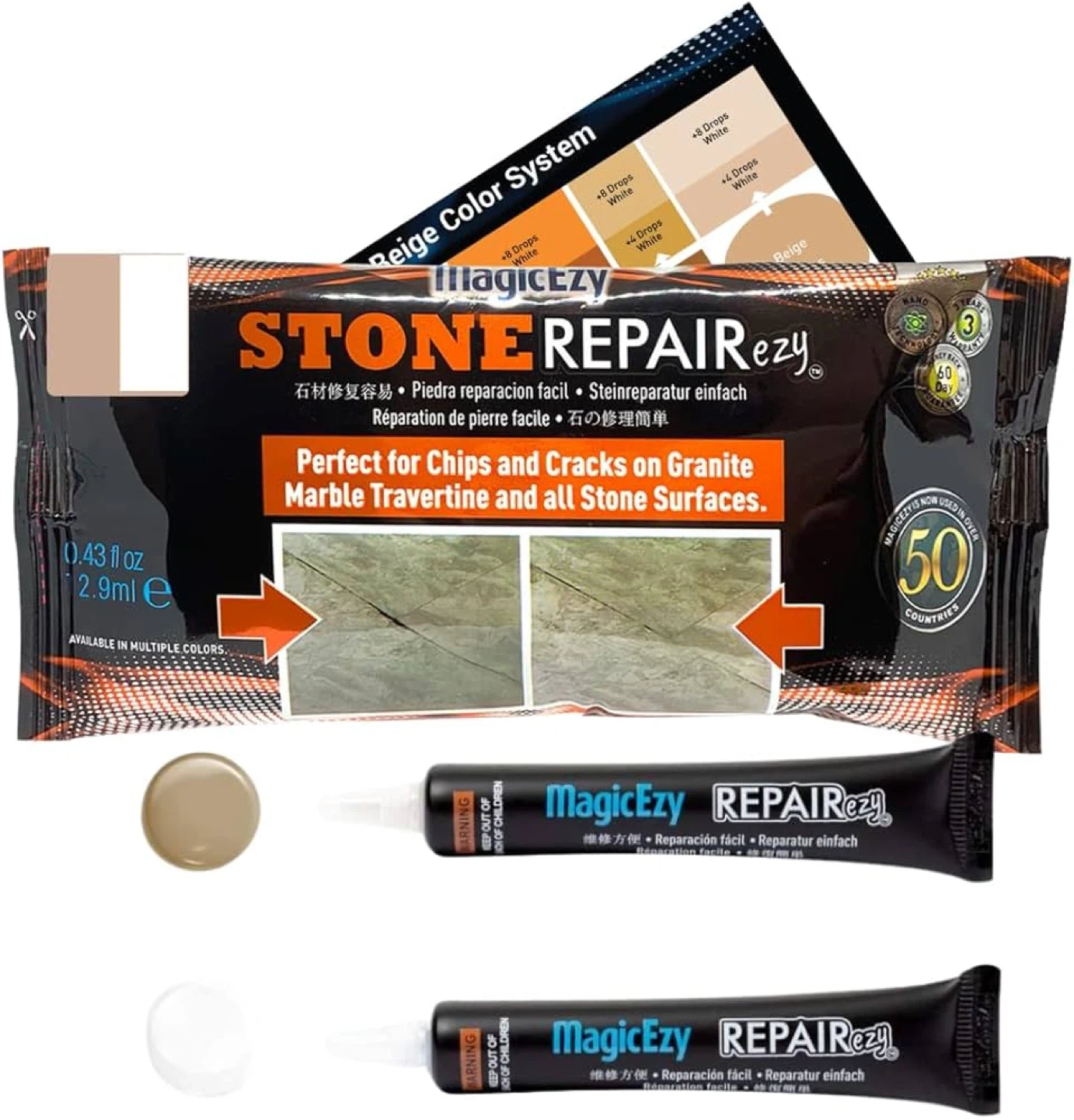 67I'm selling a MagicEzy STONE REPAIRezy for chips and cracks on granite, marble, travertine, and all stone surfaces. It's available in multiple colours and is easy to use! This is perfect for your home repairs