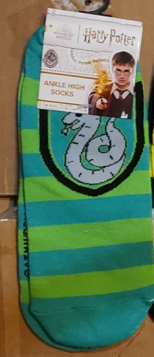 Get ready to show off your house pride with these Harry Potter Slytherin ankle high socks! They feature the Slytherin house crest and are perfect for any fan of the series. These socks are brand new for pickup in Queens NY