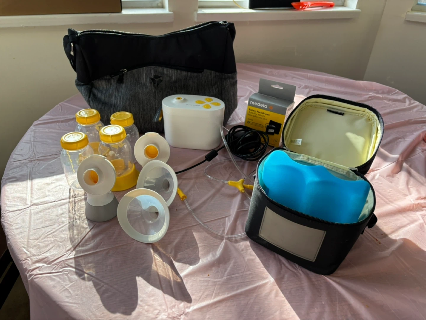 68Selling a Medela breast pump, complete with all the accessories you see in the photos. It comes with bottles, flanges, and a convenient carrying bag. Perfect for new moms!
