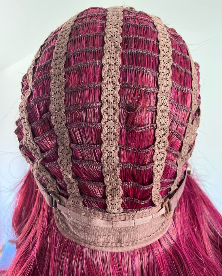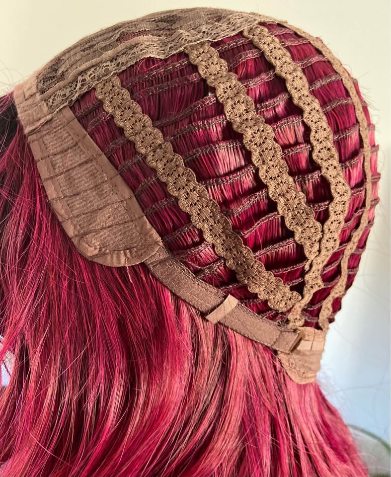 NWOT 28” Long Wavy Curly Hot Pink Ombré Wig w/ Bangs 2285
