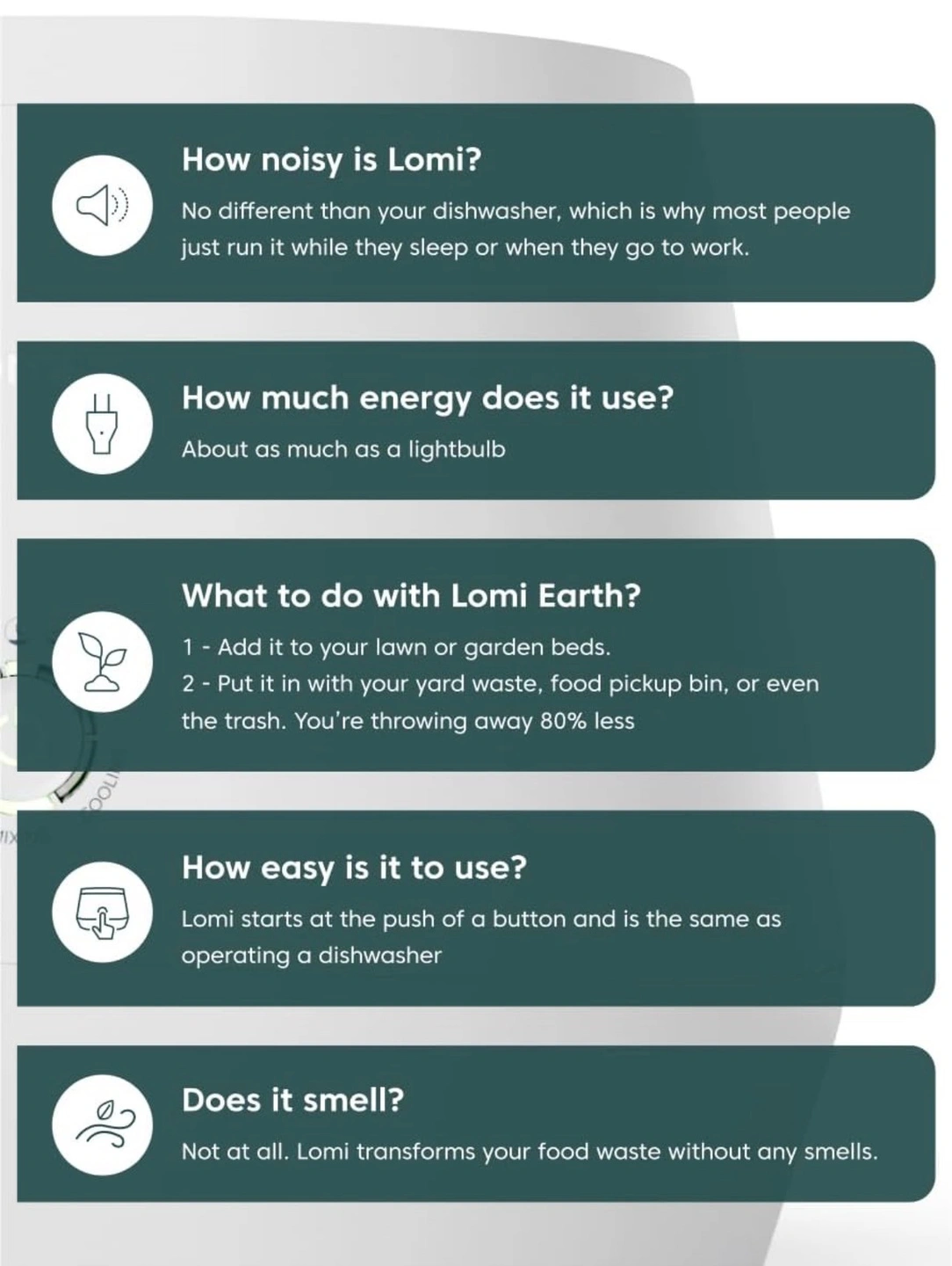 306Lomi Cap Bundle | World's First Smart Waste™ Electric Kitchen Composter | Turn Waste into Natural Fertilizer with a Single Button | Odor Free | 3L Bucket (1.3 Cap Bundle) NOTE: New in box, not used Lomi Cap Bundle includes: Lomi Electric Composter, 45 Cycles of LomiPods, 45 Cycles of Lomi Filters + Lomi Bucket Cap Proudly Canadian: Headquartered in British Columbia, Lomi is designed and developed in Canada, supporting a locally based workforce. Smart & Eco-Friendly Composting: Lomi is the world's first smart waste electric composter, effortlessly transforming food waste into nutrient-rich natural fertilizer in under 24 hours. Say goodbye to waste guilt and hello to a sustainable lifestyle—all from your countertop. Reduce Waste & Lower Your Carbon Footprint: By using Lomi instead of sending food scraps to landfills, you can cut your carbon footprint by up to 127%. Turn waste into plant food and contribute to a healthier planet.