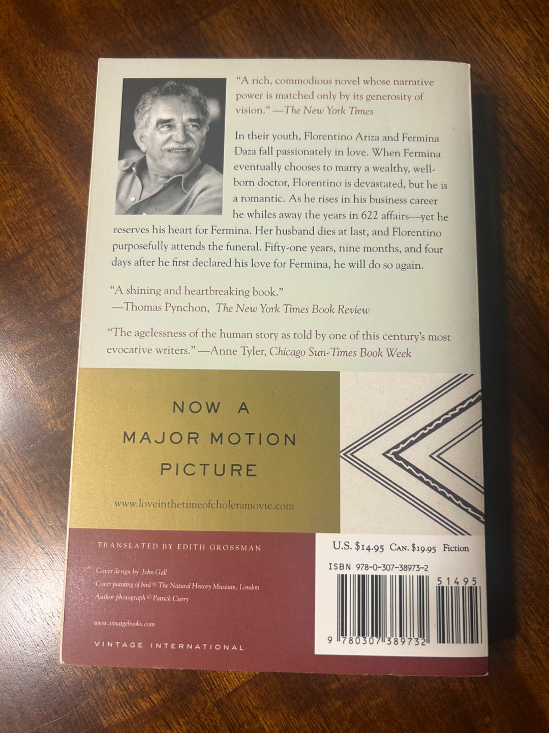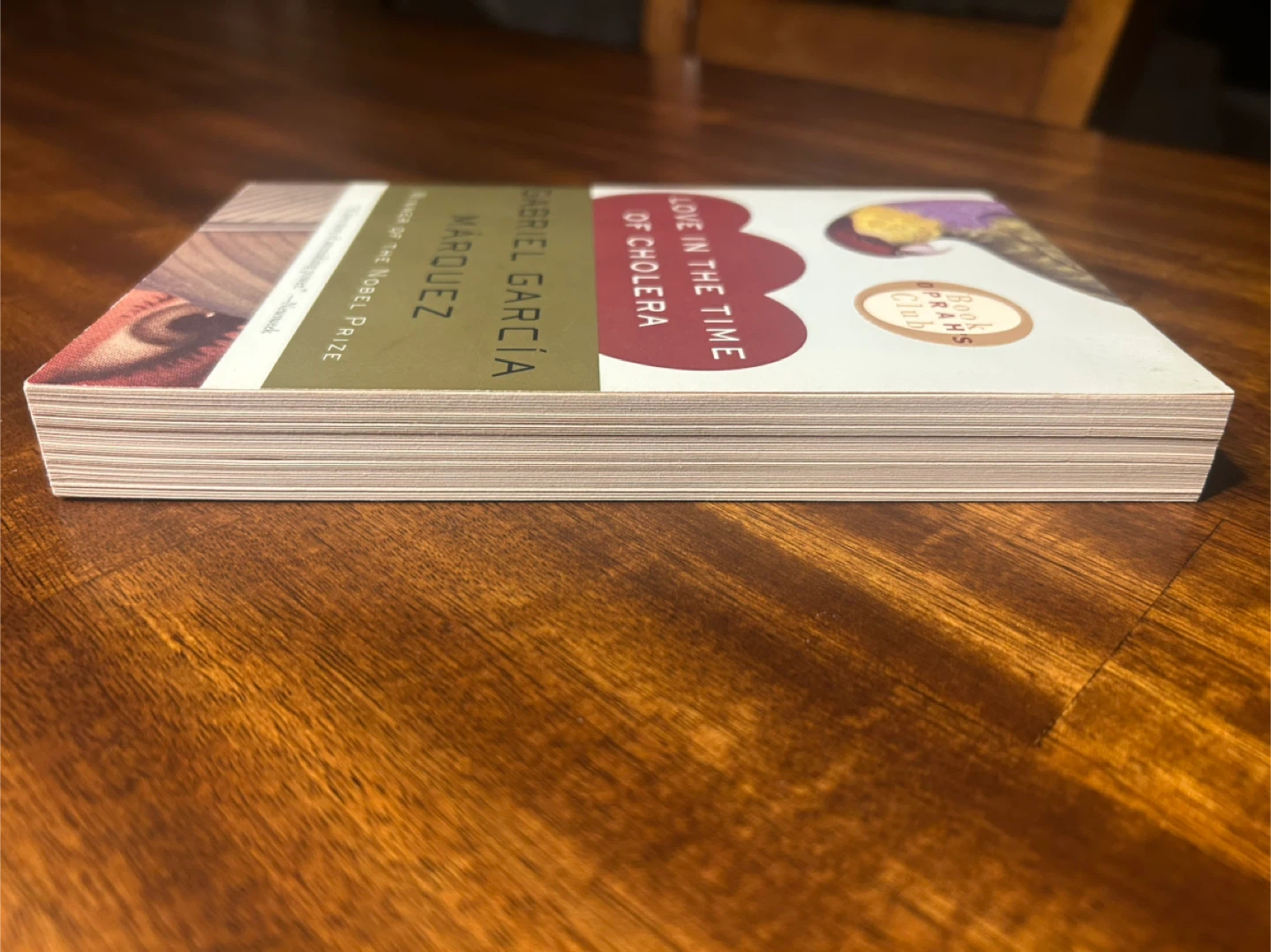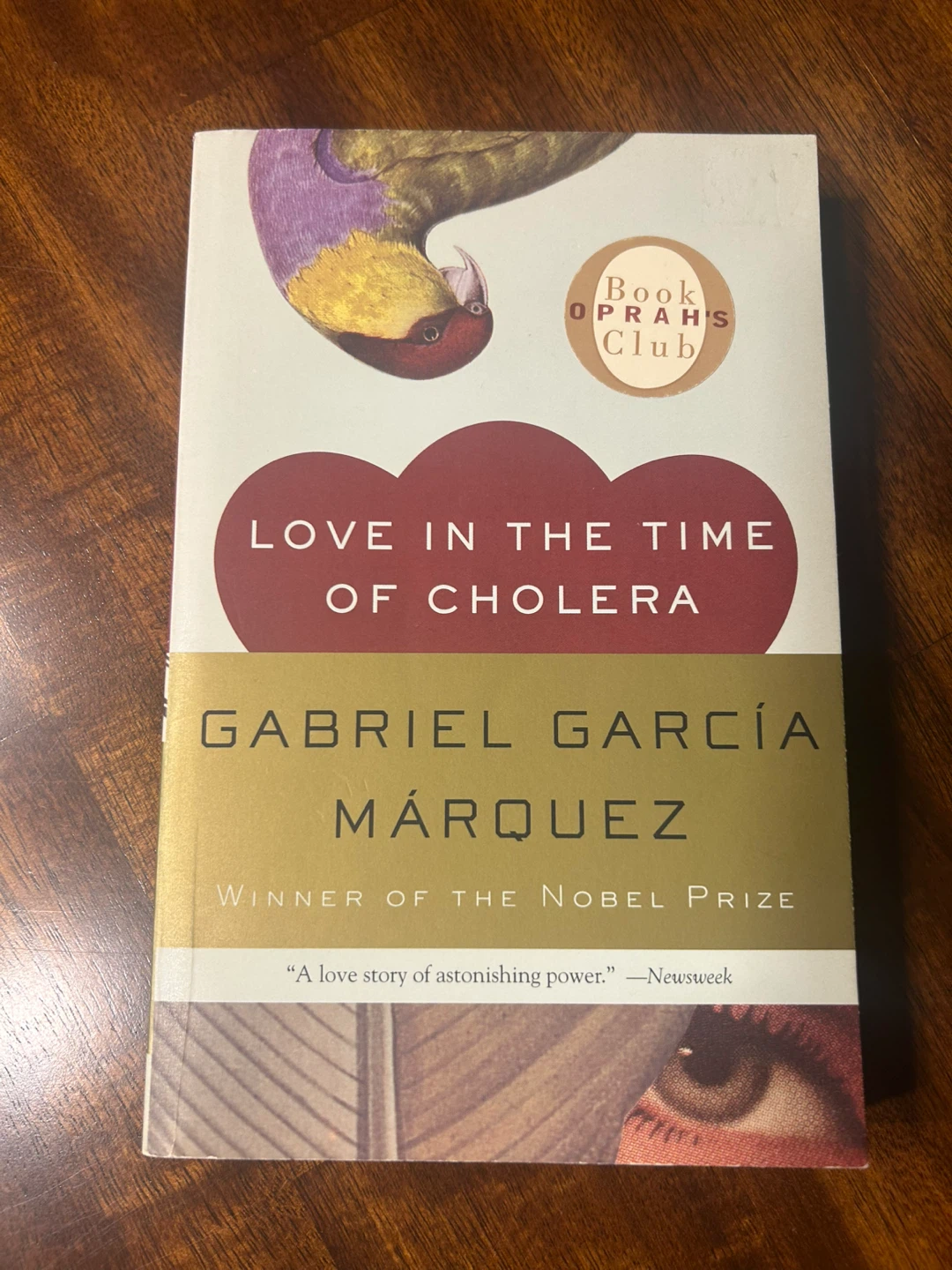 Selling a copy of "Love in the Time of Cholera" by Gabriel García Márquez. It's a novel that won the Nobel Prize and was part of Oprah's Book Club. A timeless story!