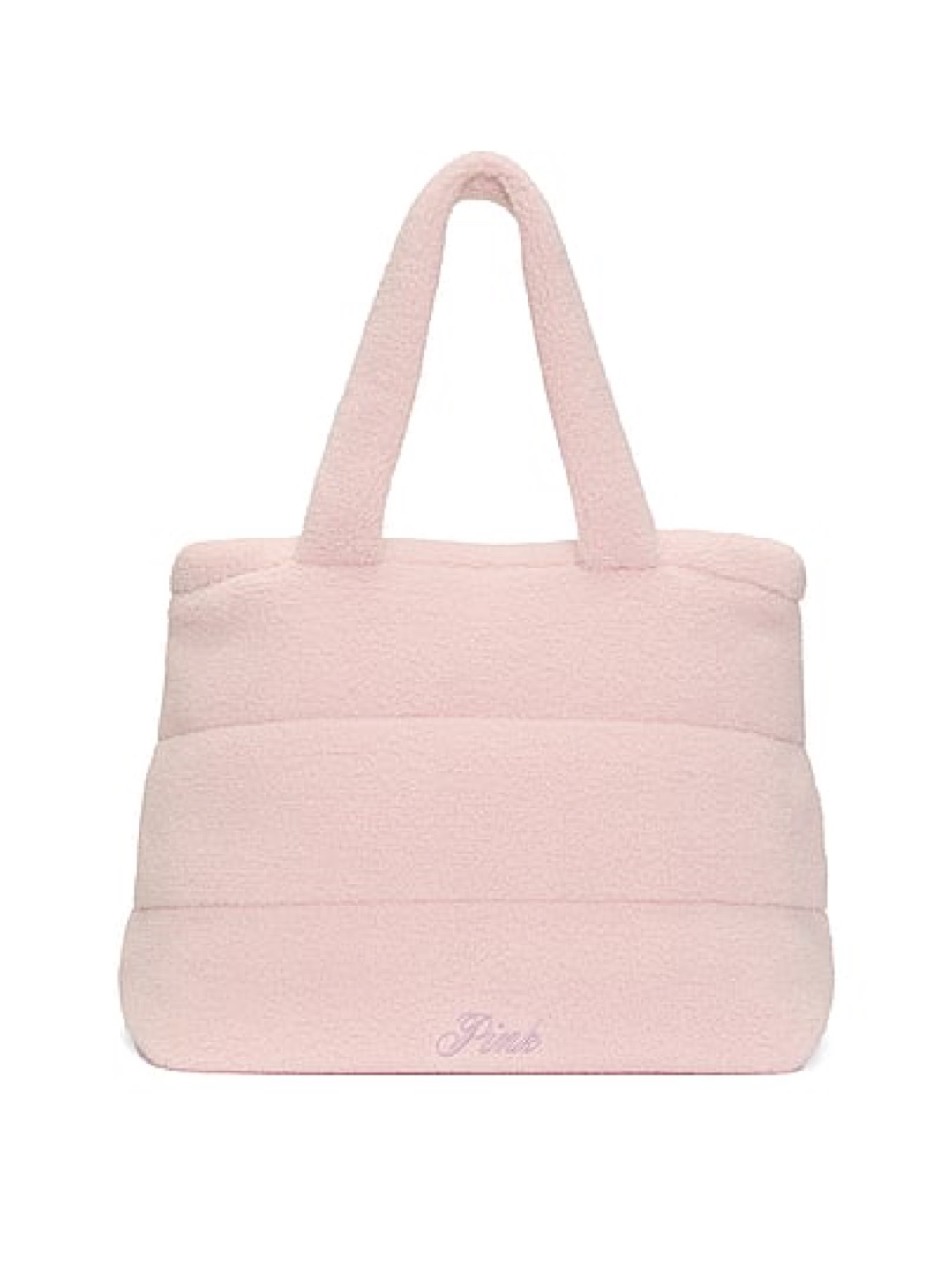 Check out this super cute PINK Sherpa Tote Bag from Victoria's Secret! It's in great condition and perfect for carrying your essentials around town. The soft sherpa material makes it extra cozy and stylish