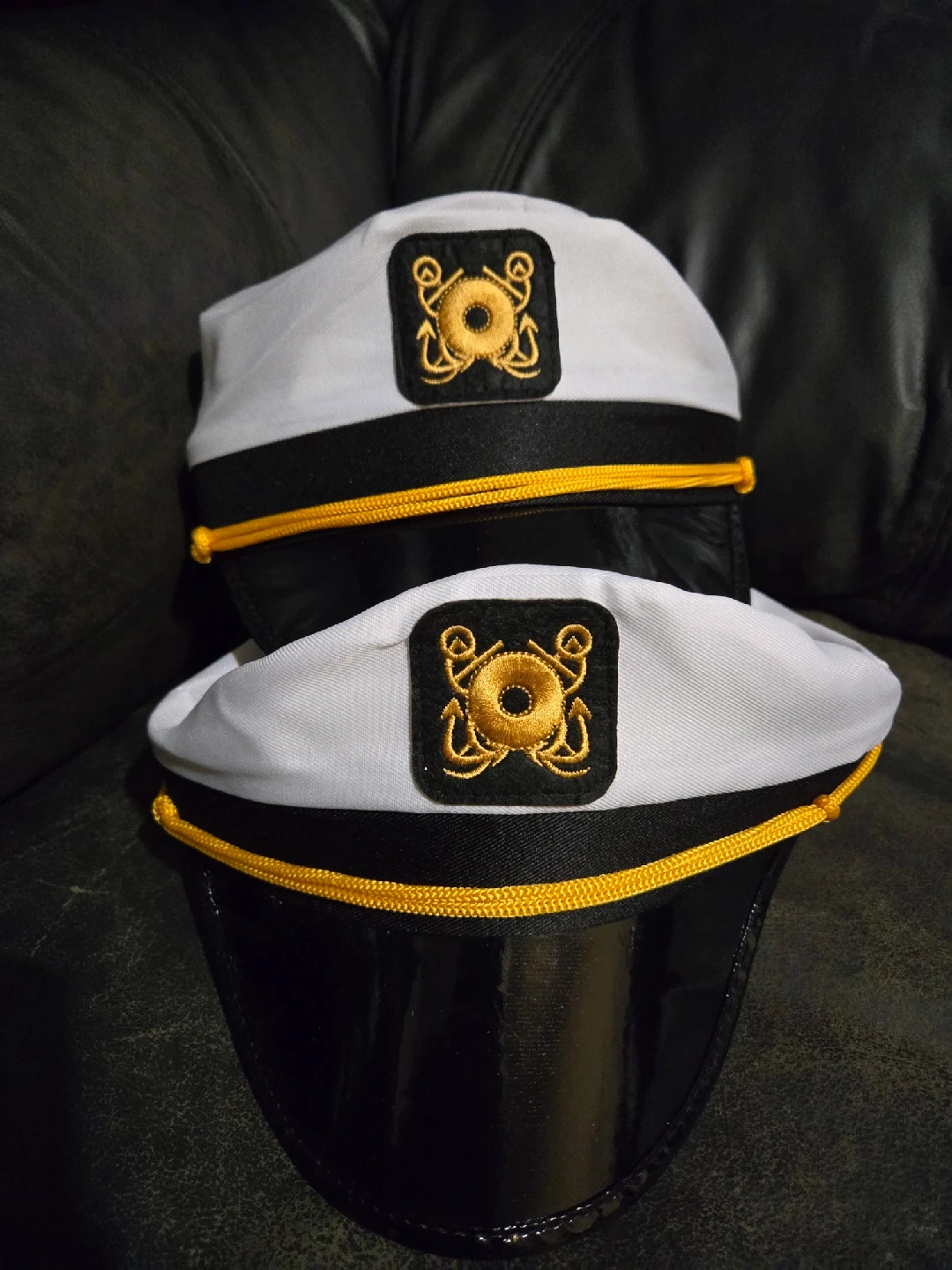 70Here are two captain hats! They are white with a black band and gold detailing. Perfect for a costume or party! Will sell for $5 each. 3 available.
