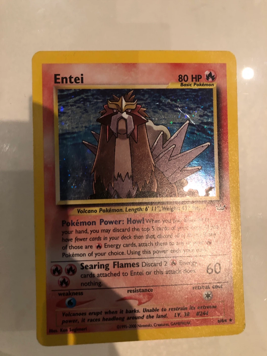 262Selling an Entei Pokemon card. It has some wear on the back, but the front is in good condition! Great for any collector. I ALSO TaKE TRADES!