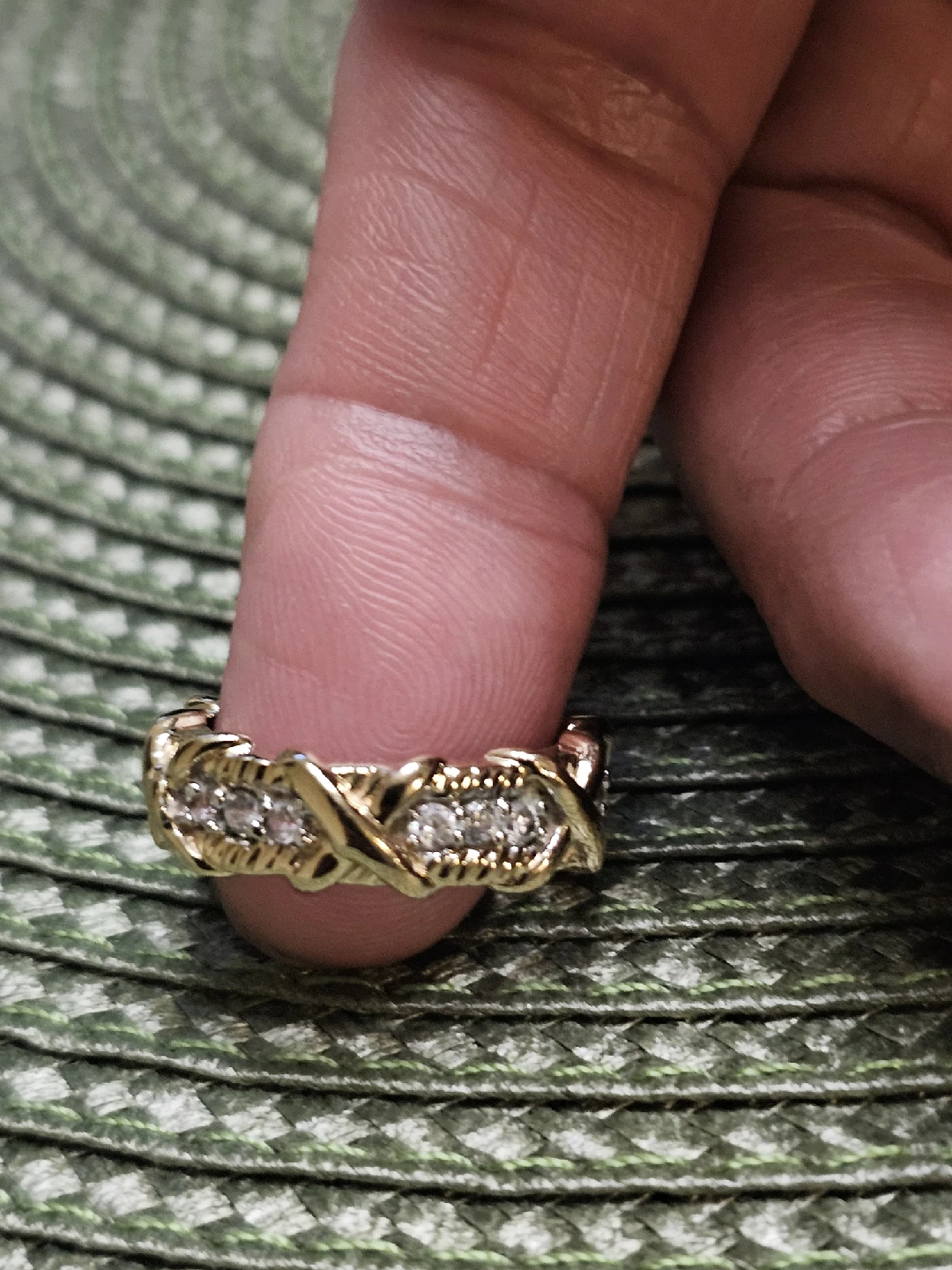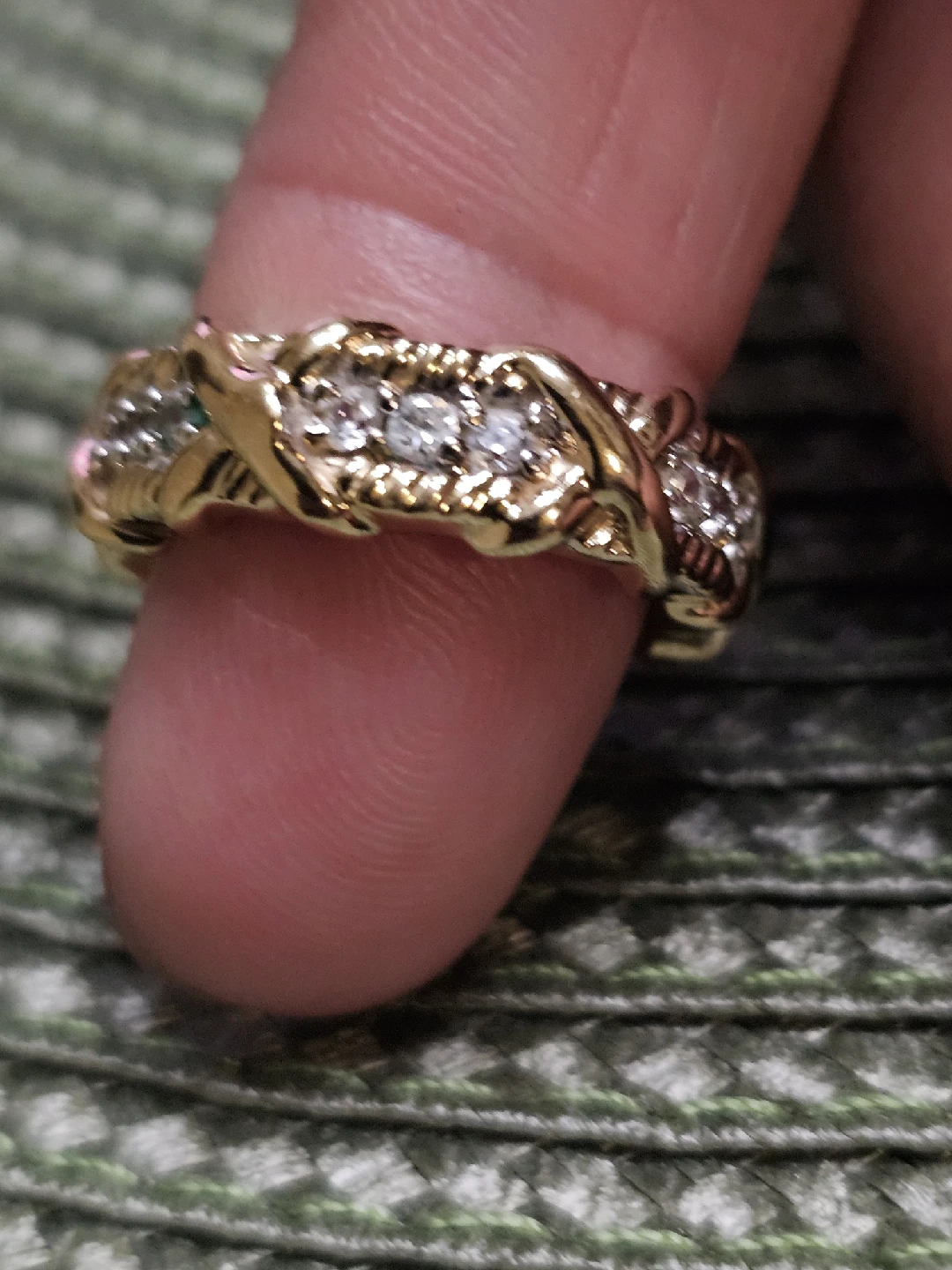 Selling a beautiful gold ring stamped 925 with diamond accents! It's in great condition and ready for a new home. Stamped JBK