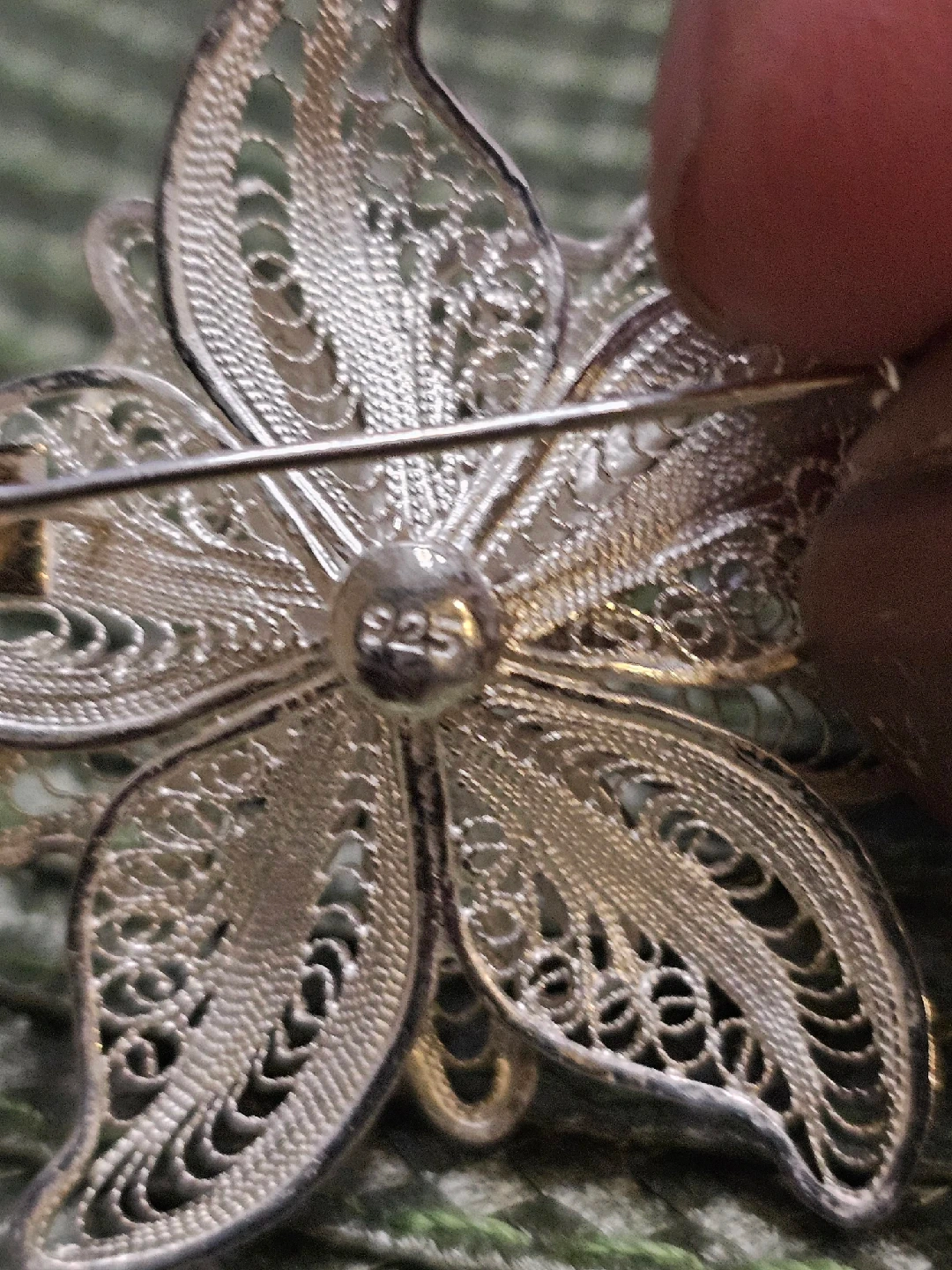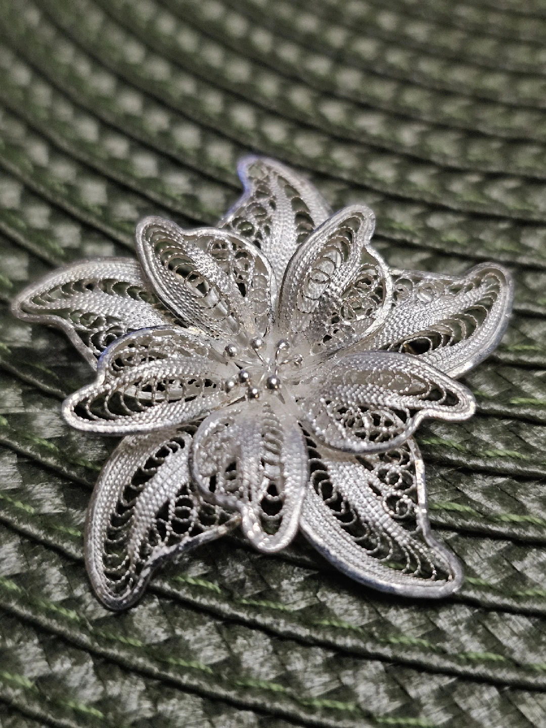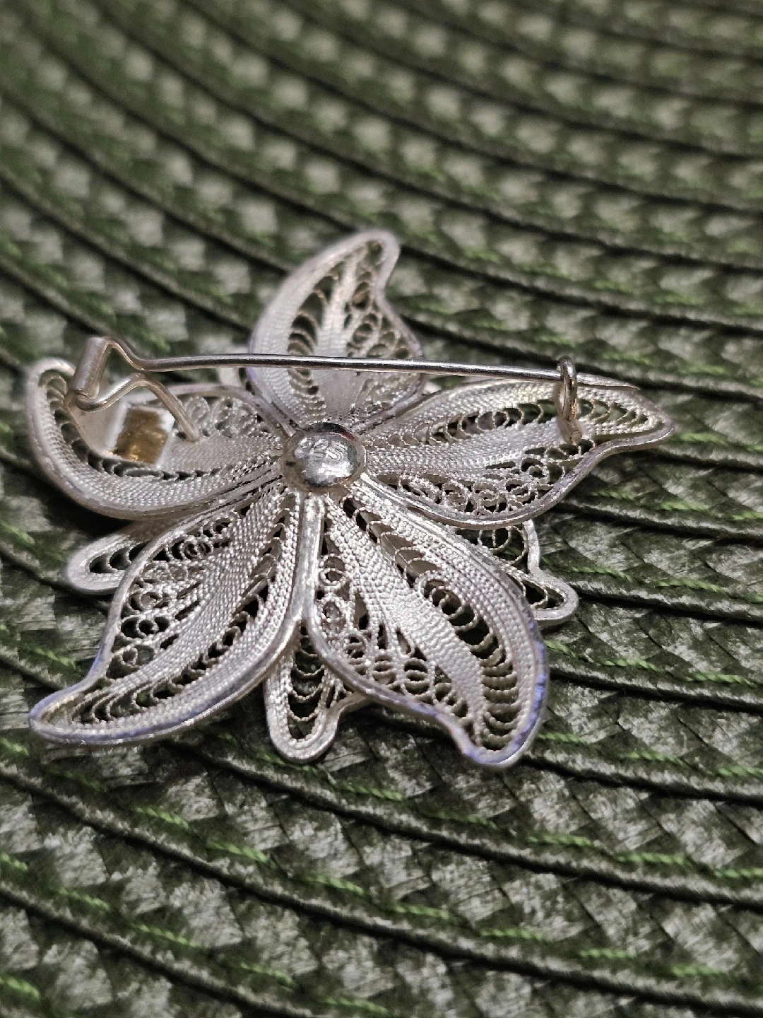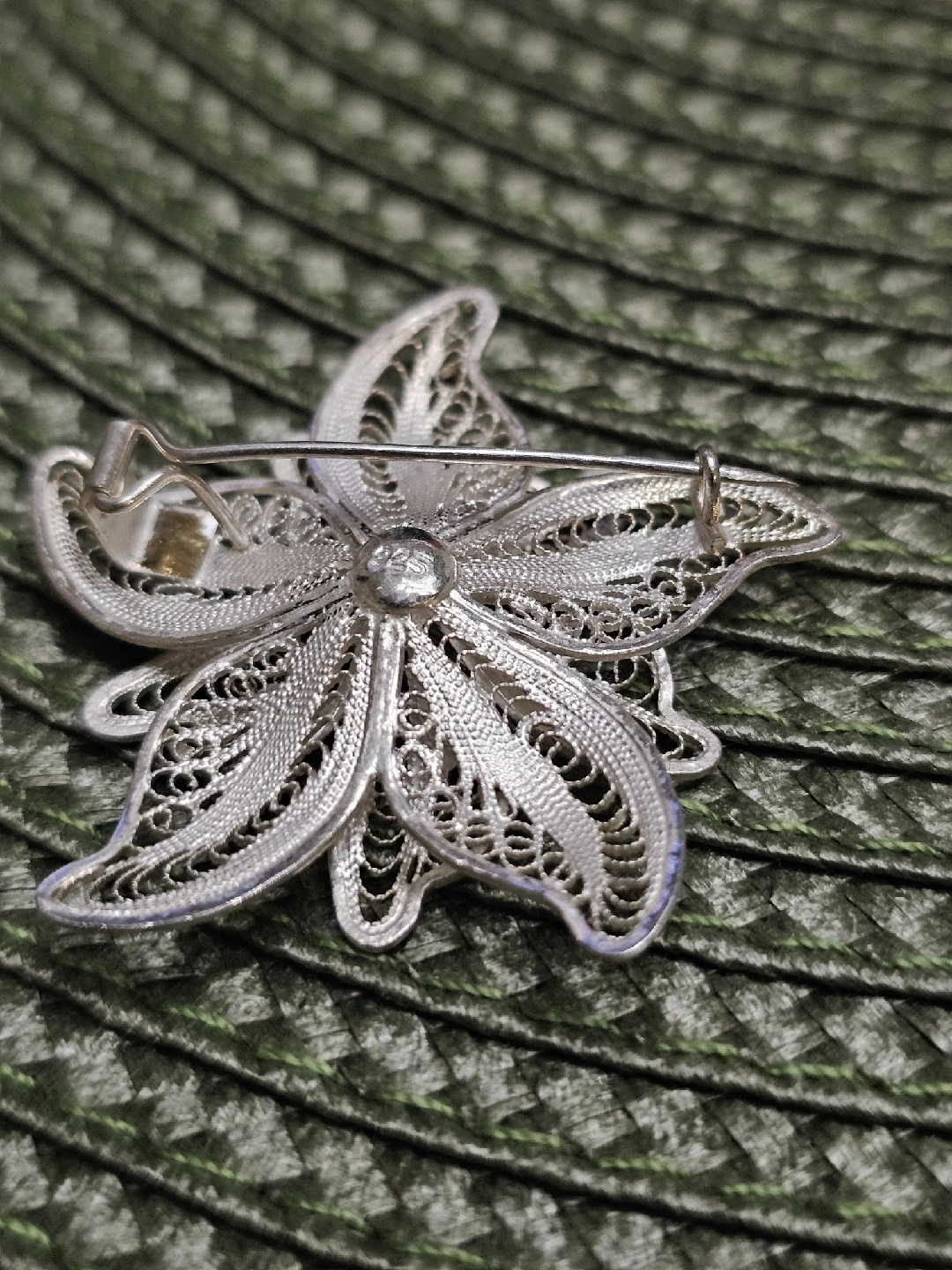 Selling a lovely vintage flower brooch made of 925 sterling silver. It features a delicate filigree design. Perfect for adding a touch of elegance to any outfit!