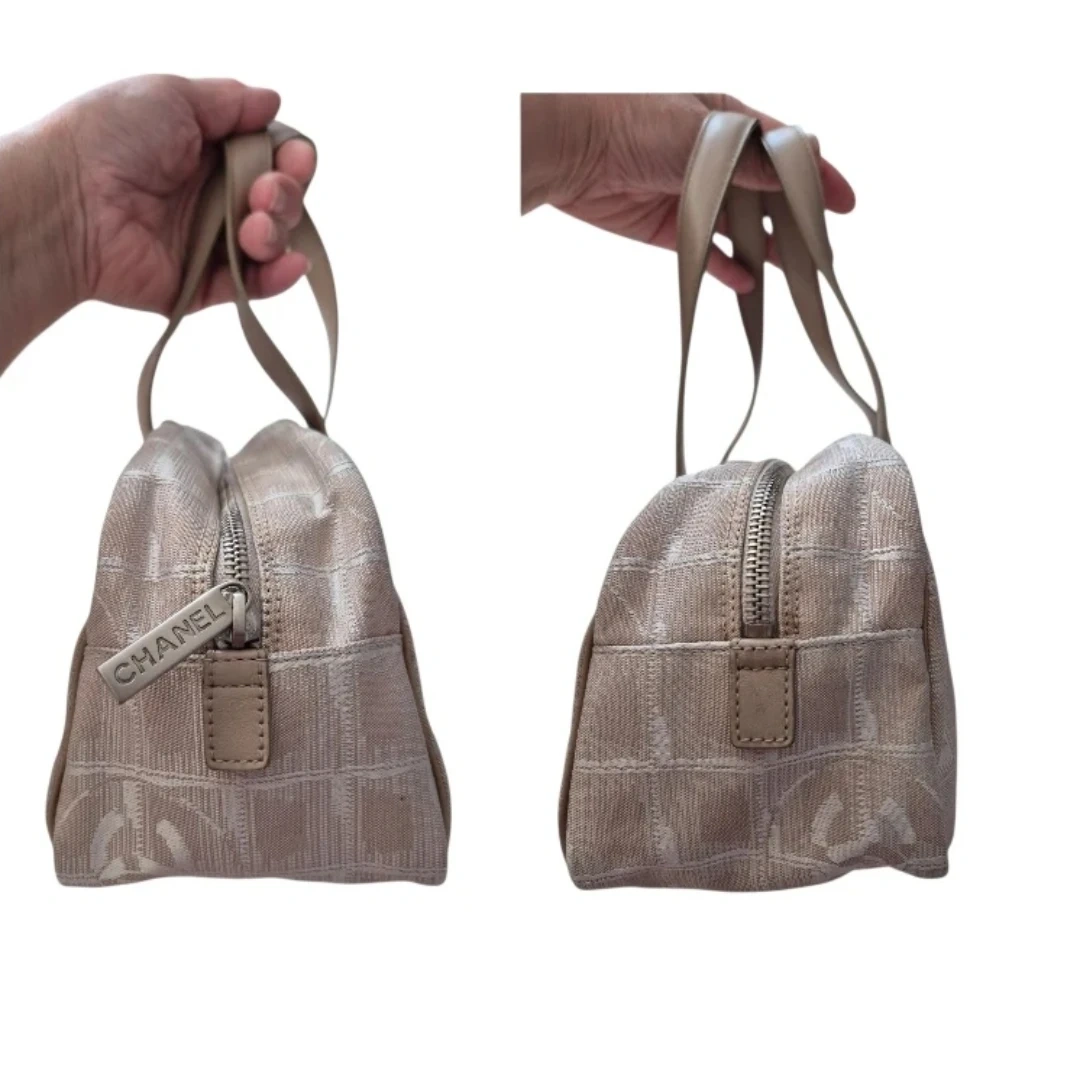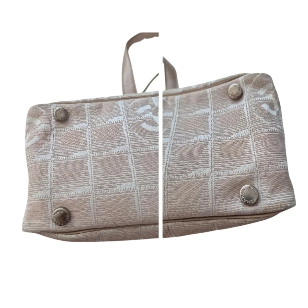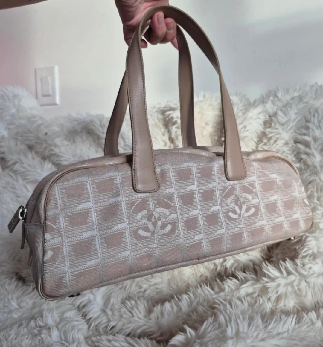 Authentic Chanel Travel Line Beige Jacquard Canvas Handbag