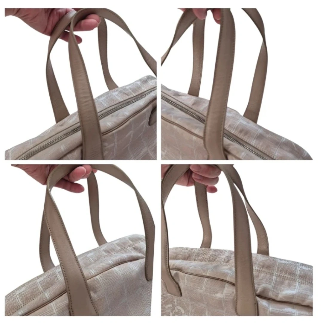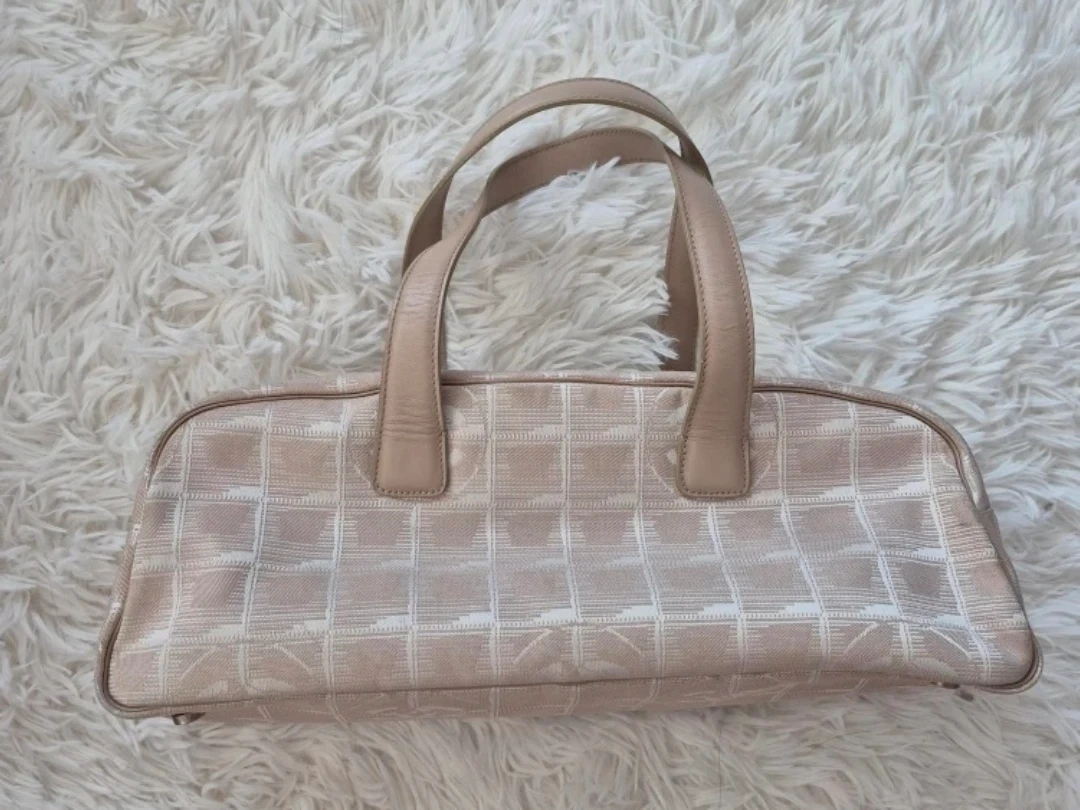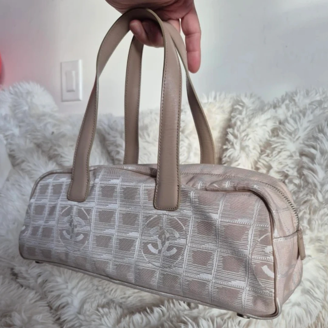 Authentic Chanel Travel Line Beige Jacquard Canvas Handbag