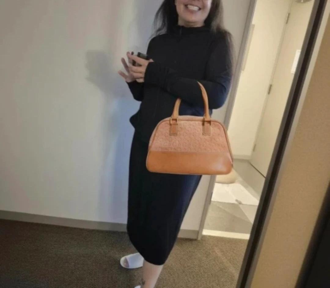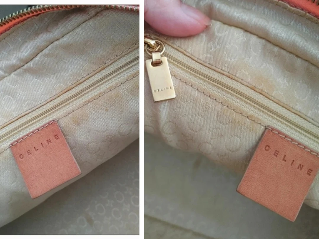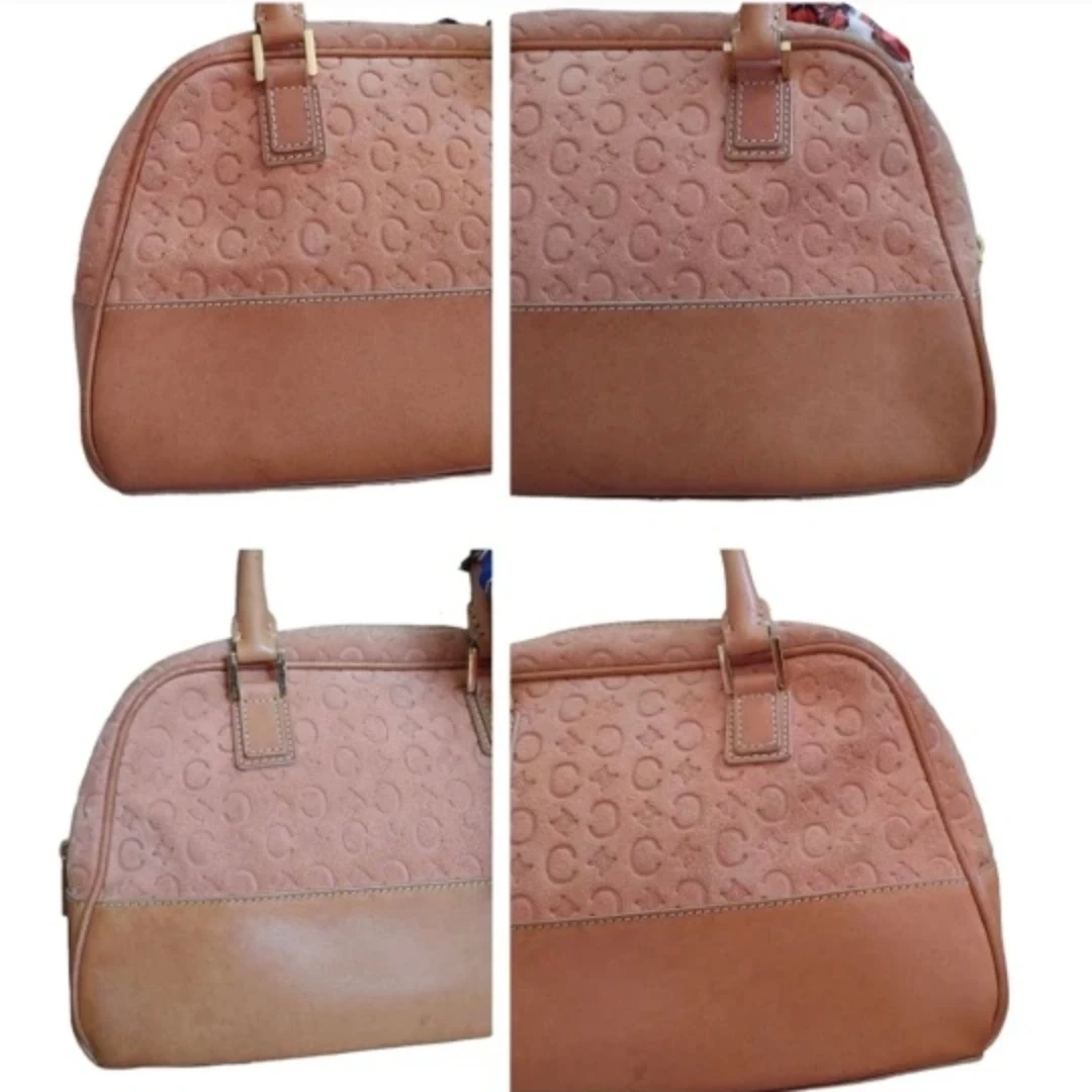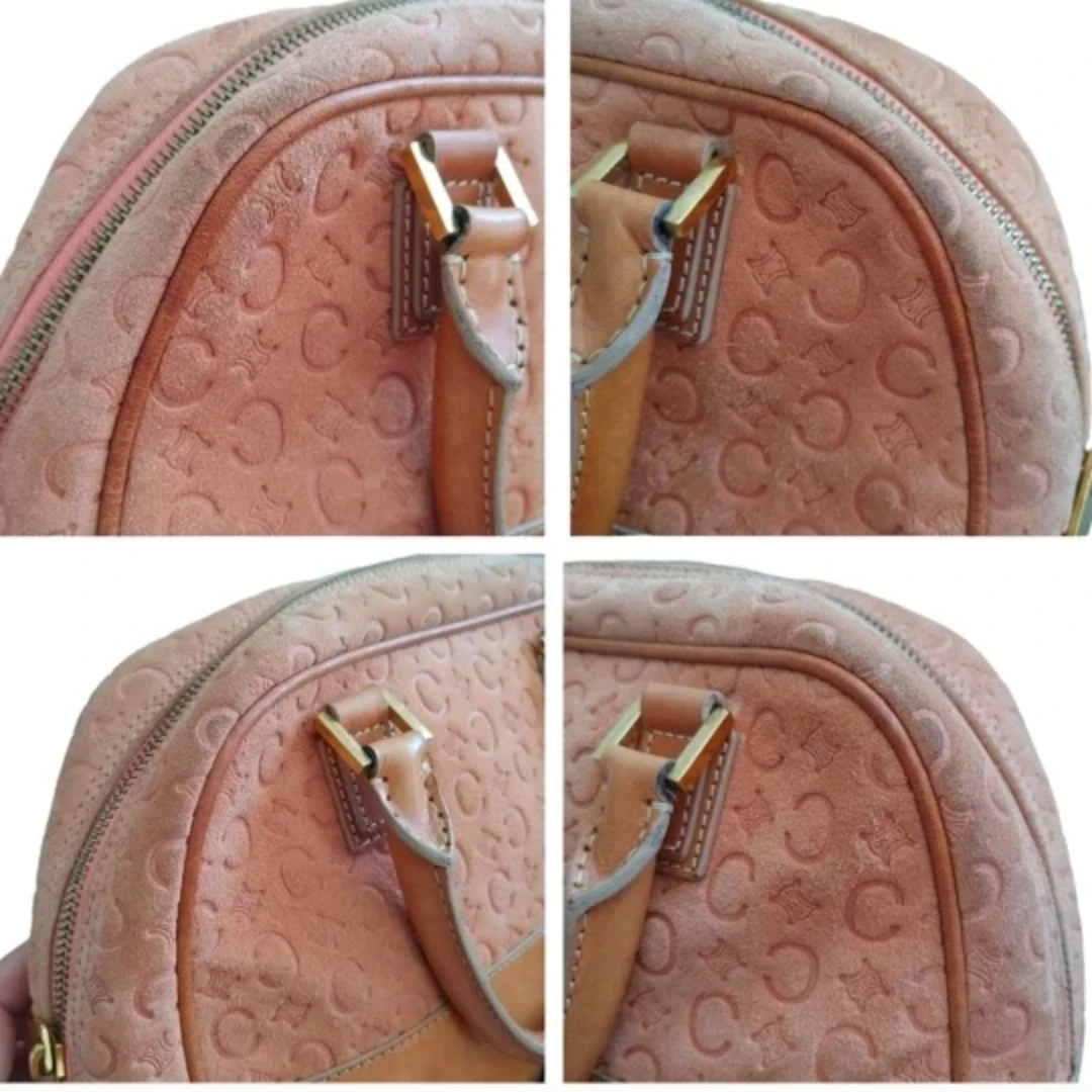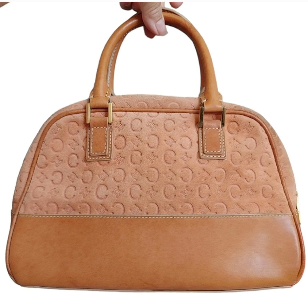 Authentic Vintage Celine Paris Macadam Peach Suede & Tan Leather Boston Bag.