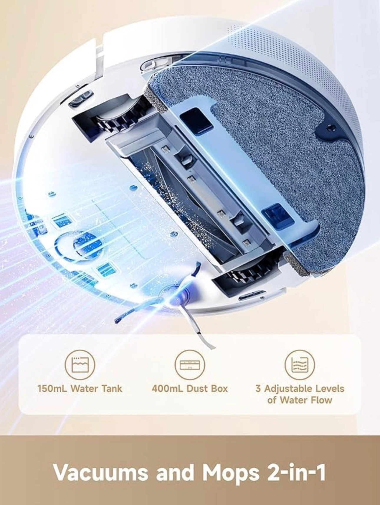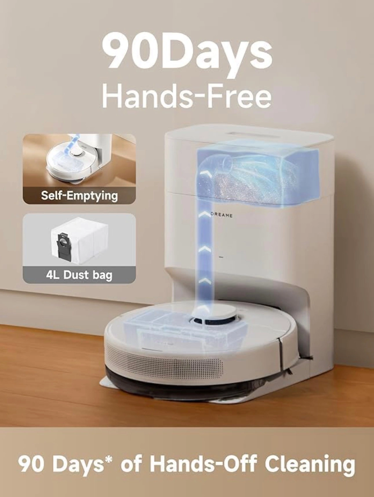 306DREAME D10 Plus Gen 2 Robot Vacuum and Mop with Self Emptying Base for 90 Days of Cleaning, 6000 Pa Suction and LiDAR Navigation, Obstacle Avoidance, Wi-Fi Connected NOTE: New Open-Box item, has very minor scuff marks. priced accordingly. Up to 90 Days of Hands-Free Cleaning: Enjoy true hands-off cleaning with our automatic Set-and-Forget dust collection system that revolutionizes your cleaning routine by eliminating the hassle of dust disposal; Featuring a generous 4 L dust bag capacity, it provides up to 90 days of uninterrupted cleaning convenience. Powerful 6000 Pa suction: Handle unparalleled cleaning power with 6000 Pa Vormax suction,tacking dirt and pet hair with its high-performance motor and 4 customizable suction levels; Meanwhile,the innovative floating rubber brush ensures spotless carpets by efficiently removing dust while minimizing tangling, making it a must-have for pet owners. 2-IN-1 Vacuum and Mop: Effortlessly adjust moisture levels with the D10 Plus Gen 2's 2-in-1 dual-action vacuum and mop; Enjoy the convenience of a 150 ml clean water tank with three flow settings,while the high-capacity dust box captures dirt and prevents leaks and odors. Smart Mapping and Obstacle Avoidance: Transform your cleaning routine with Smart Pathfinder technology and precision obstacle avoidance, generating intuitive, editable maps for thorough coverage while effortlessly steering clear of obstacles with unparalleled precision. Easily to Use Dreamehome App: Tailor your cleaning experience with multi-floor mapping, ensuring optimized cleaning across various surfaces while safeguarding delicate areas with customizable no-mop zones and virtual boundaries through the Dreamehome App.