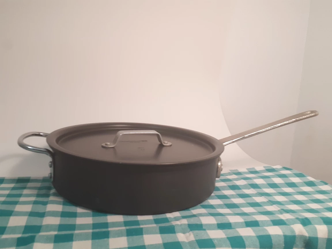 Selling a Calphalon saucepan from older generation of Professional series, it has hard anodized aluminum surface inside out, thick walls for perfect heat distribution, high resistance to acidic foods, and safe to use with metal utensils. Made in USA. Model 5003, with a 3-quart capacity. It's in great shape and ready for your next culinary adventure. Versatile usage: stovetop as well as oven. With lid.