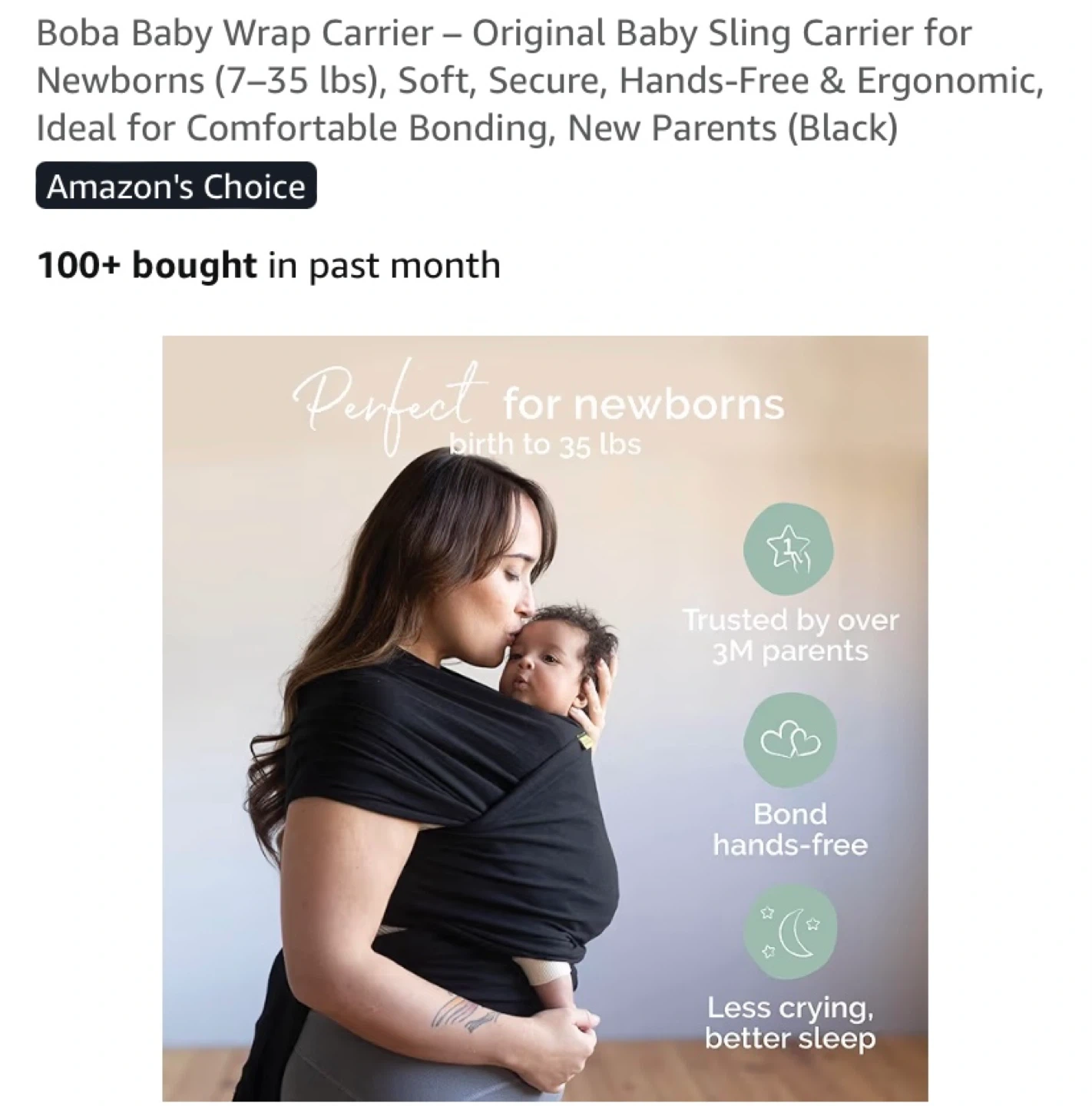 291New Boba Baby Wrap Carrier Newborns 7–35 lbs Black $25 (retail $55 plus tax) Pickup in Whitby