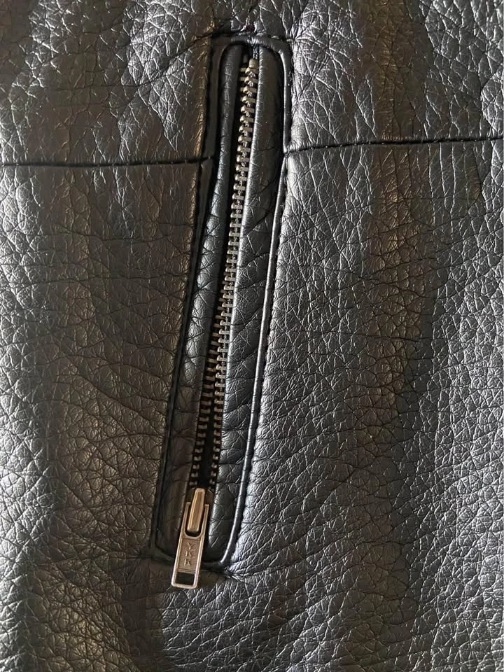 The vinyl is in perfect condition other than small scuff area by left side pocket zipper (see photo), and inside label / tag has been cut off