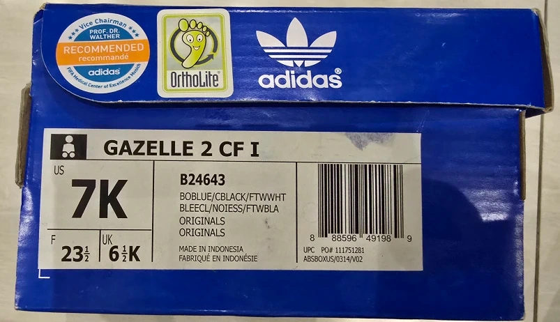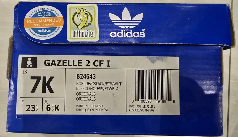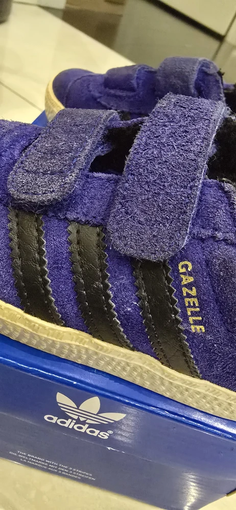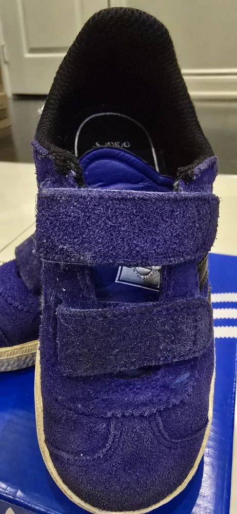 Selling a Cute Adidas Blue Suede Gazelle Shoe in a little kids size 7! They have the 3 famous stripes down the side! They show some normal "Adidas discoloration" but are still an amazing stylish sneaker your little one would look super cute in!