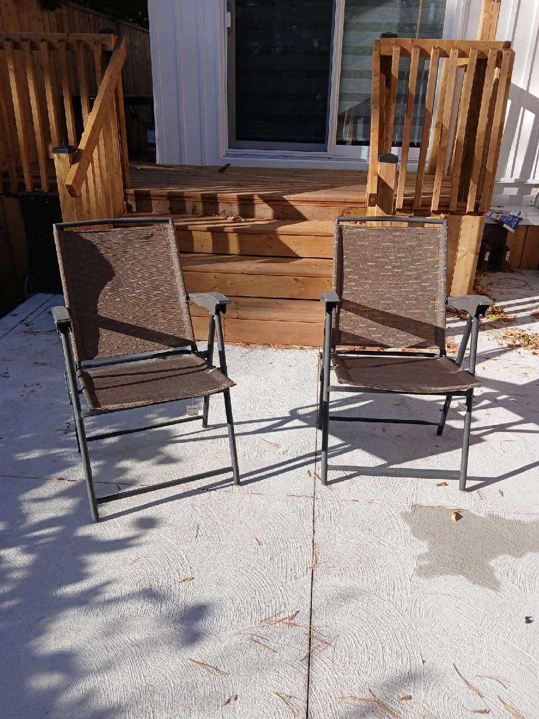 Selling a set of two brown outdoor folding chairs! They're in great shape and perfect for relaxing on the patio or deck. The chairs are easy to fold up and store when not in use, making them super convenient for smaller spaces. Pick up in Scarborough at Markham and Lawrence Ave E
