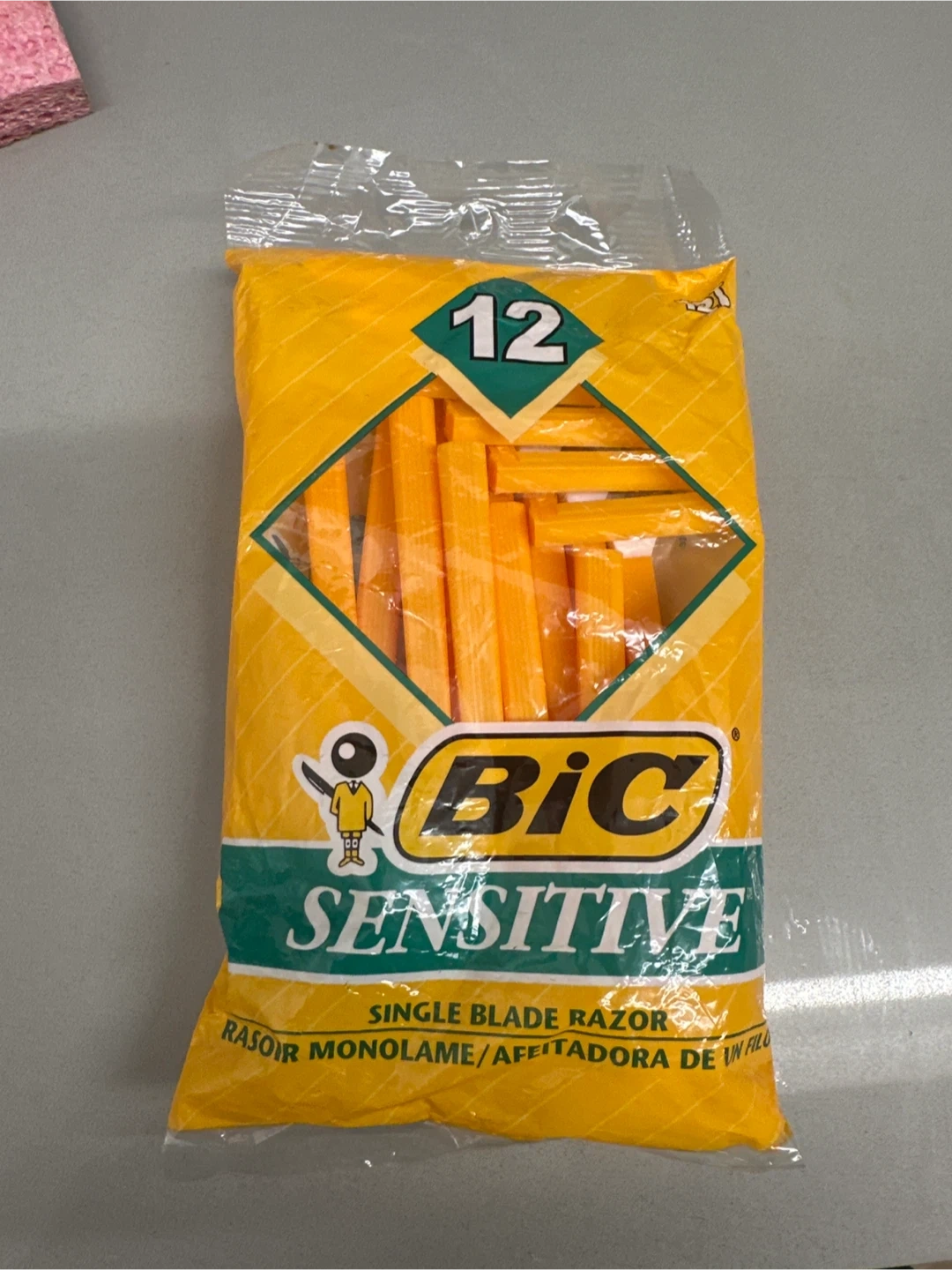 Selling a pack of BIC Sensitive single blade razors. This is a 12-pack of razors, perfect for sensitive skin. Get a close and comfortable shave with these single blade razors!