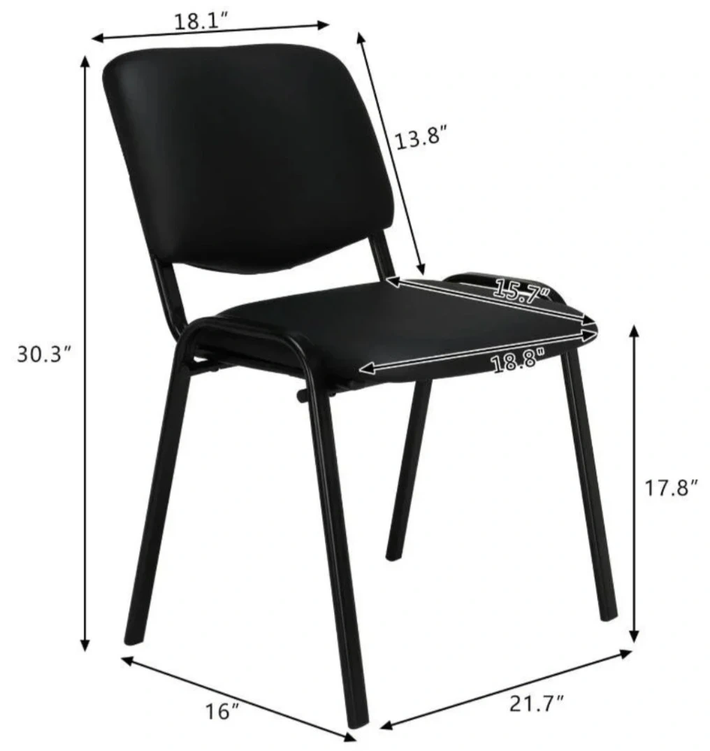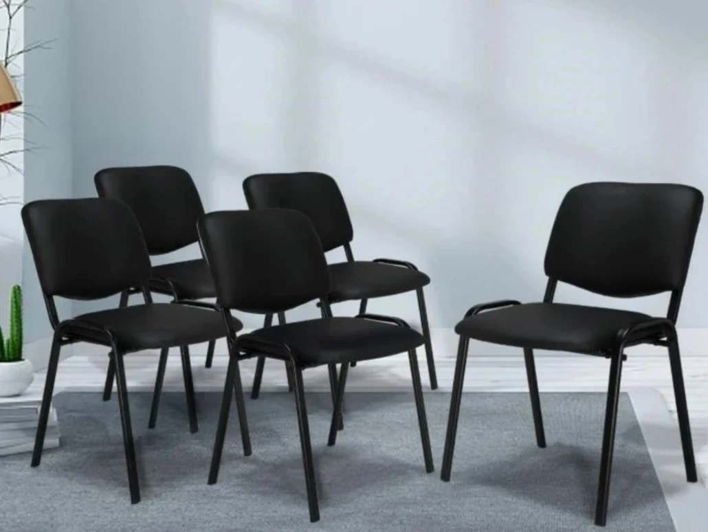 Selling a set of 5 black office chairs, perfect for a meeting room or home office setup! The chairs have a maximum weight capacity of 330lbs. Dimensions are approximately 18.1" wide and 30.3" tall.