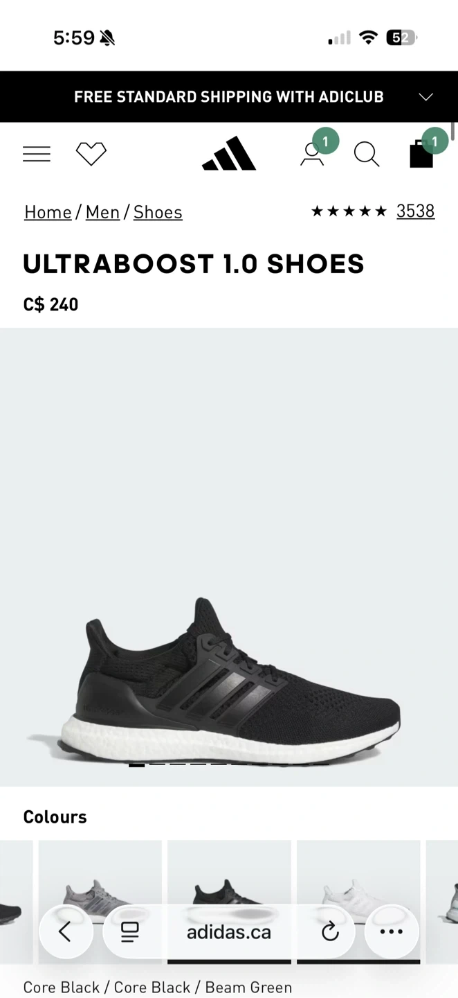 Item Name: Adidas UltraBoost 1.0 Core Black Running Shoes.