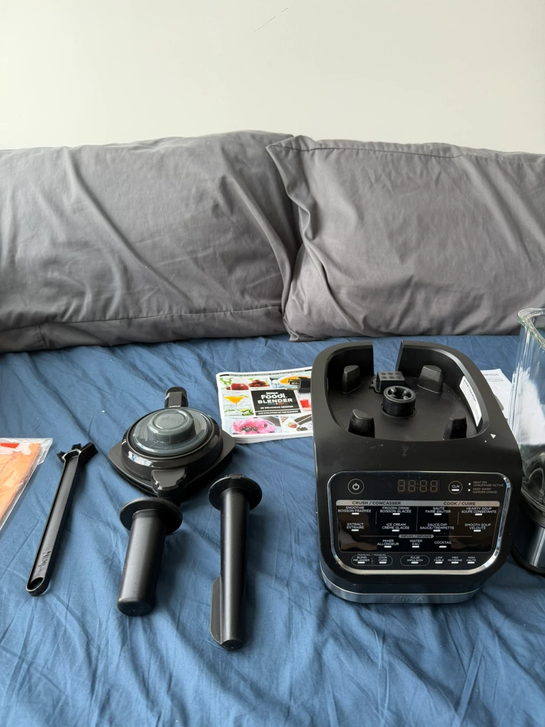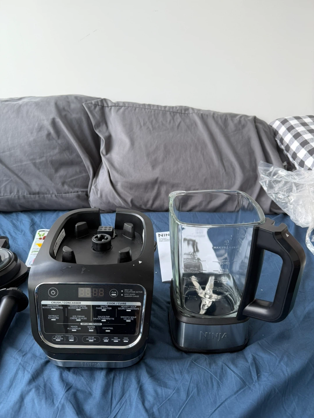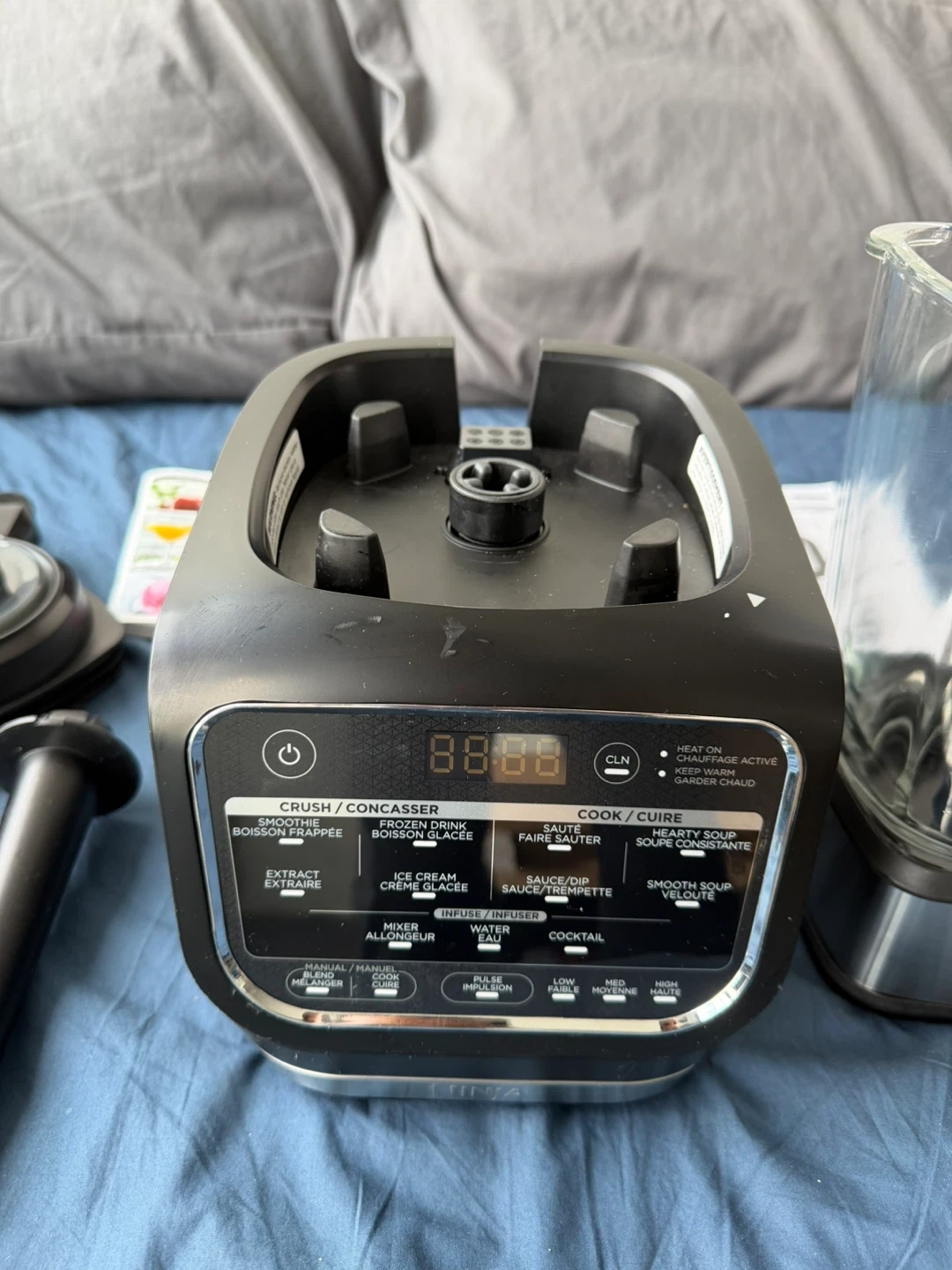 131Item Name: Ninja Foodi Blender (HB150C HB152 Series) – Powerful Hot & Cold High-Speed Blender Product Condition: Open Box/Lightly Used Pick Up Location: Jarvis and Gerrard Intersection Included: - Ninja Foodi Hot & Cold Blender base (HB150C/HB152 Series) - Large glass blender pitcher with built-in blade - Locking lid with removable cap - Two tamper/stir sticks - Cleaning brush - Recipe guide and instruction booklet Condition Notes: - Lightly used, clean and fully functional (see detailed photos) - Heats soups and blends frozen drinks, smoothies, ice cream, dips, sauces, and more - 10 pre-set Auto-iQ programs for hot and cold recipes Current Retail Price:$179 plus taxes Available for pickup ONLY in Toronto. Cash or e-transfer accepted. No shipping or delivery. Lowballers will be ignored. Serious buyers only.