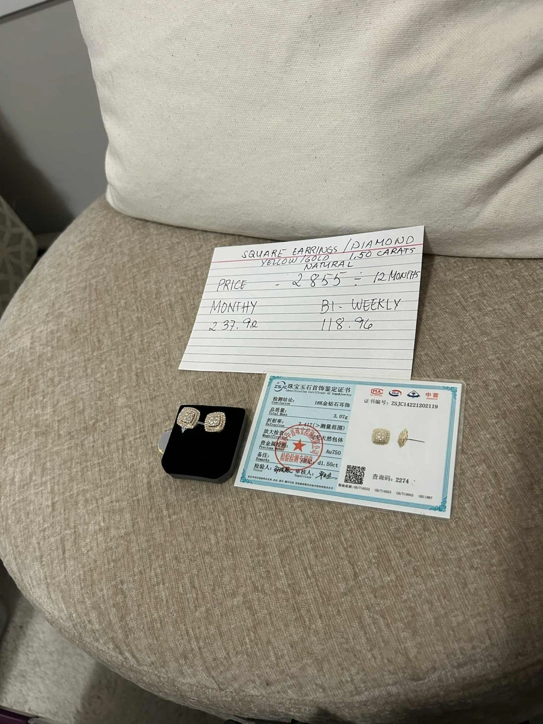 Selling a beautiful pair of 18K gold diamond earrings. These earrings feature a total of 1.50 carats of natural diamonds. The total weight of the earrings is 3.07g.