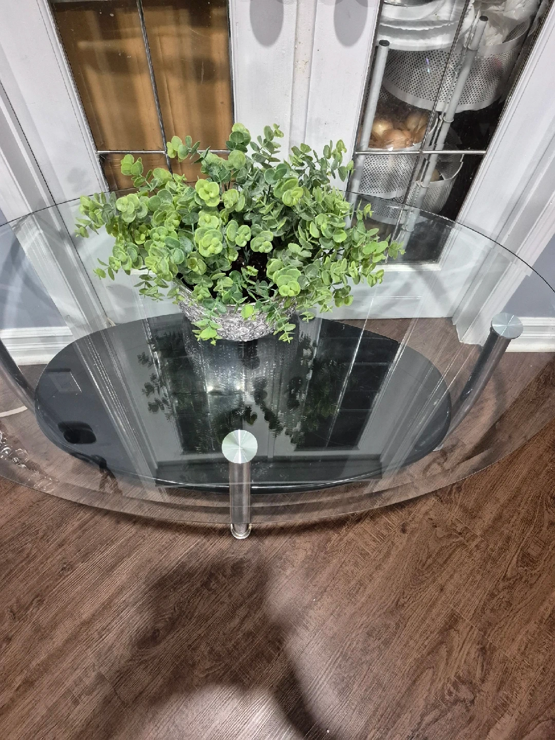 Selling a glass coffee table with a black bottom shelf. It's in great condition and would look great in any living room!