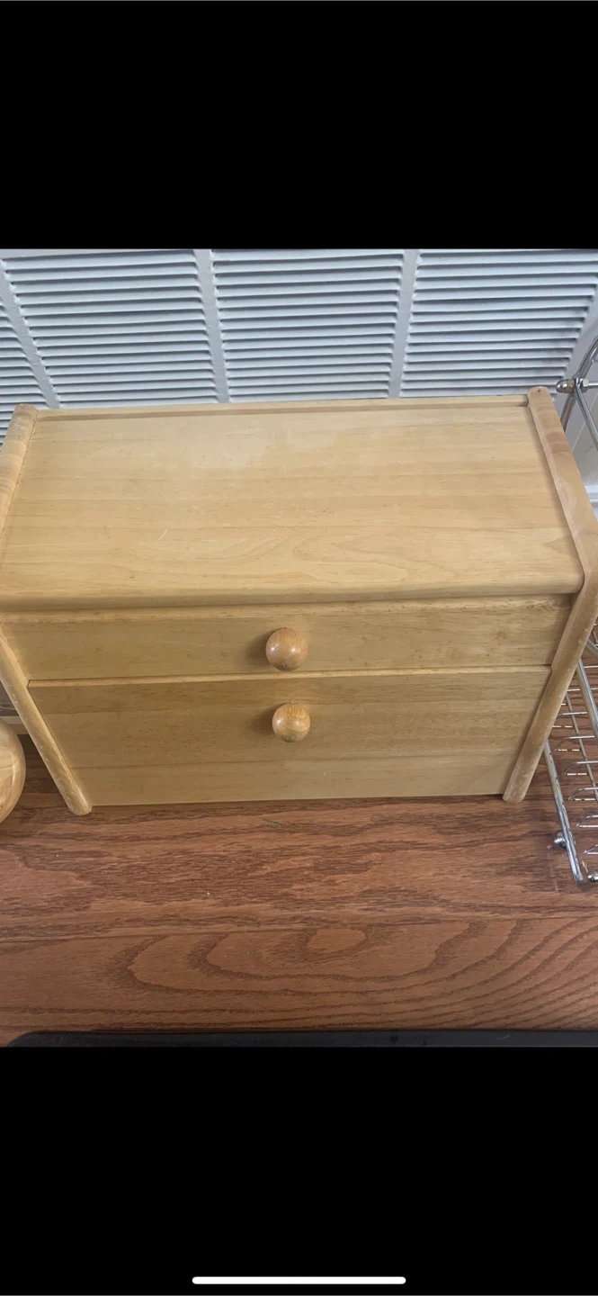 Kitchen storage great for putting Utensils, Knifes, Spoons, Forks. Butter, Bread, Ghee, Peanut butter, Jams, Jellys and anything you want. Features a two-drawer design with wooden knobs. Great for adding a clean light-wood tone to your kitchen!