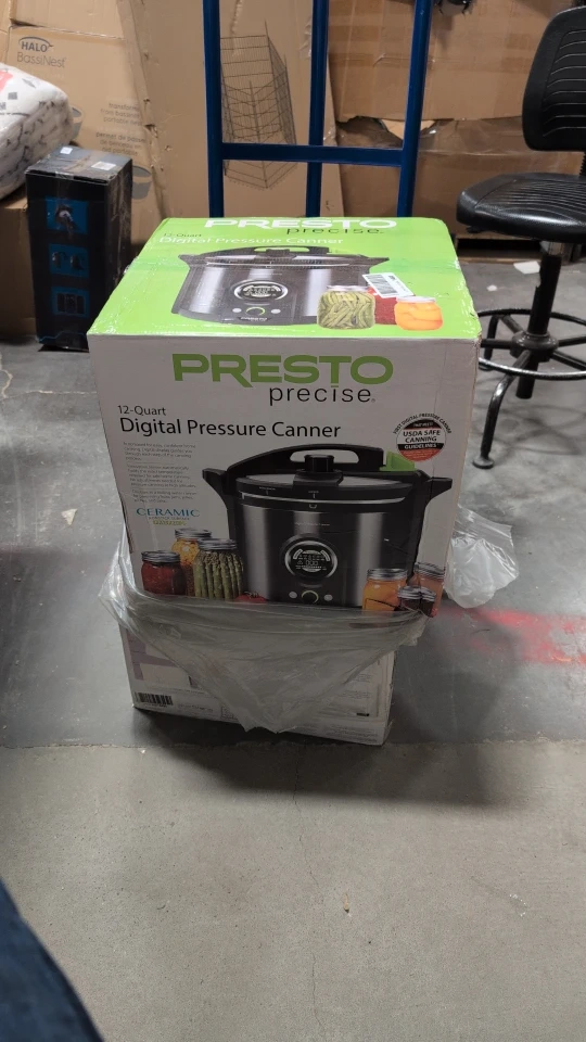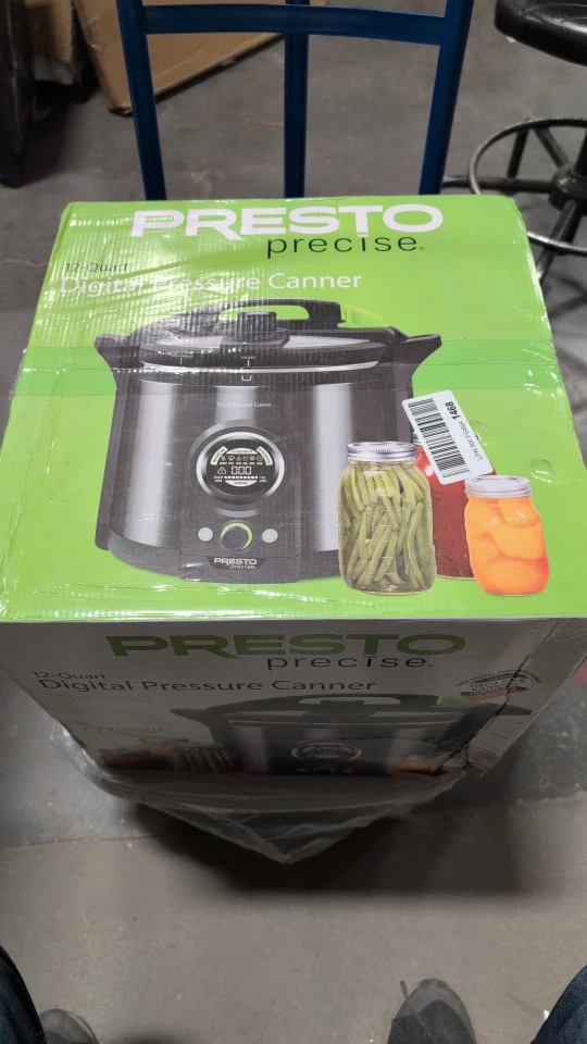 67Brand: Presto Capacity: 12 quarts Material: Stainless steel Colour: Black Stainless Finish type: Black Stainless Steel Product Dimensions: 35.6D x 43.2W x 40.6Hcm Brand new and Sealed . Retail : $530 Selling Price : $320 Cash Only Door Pick Up Pick Up Code : 143C