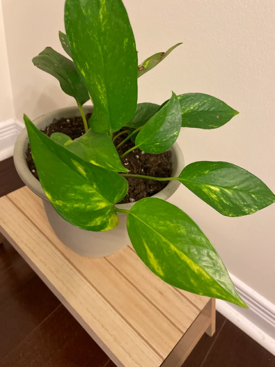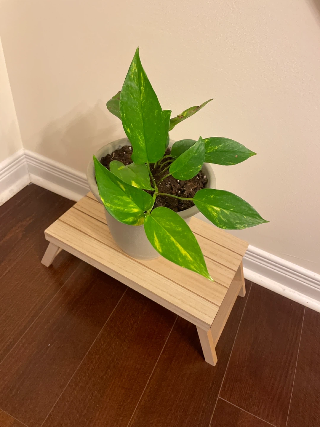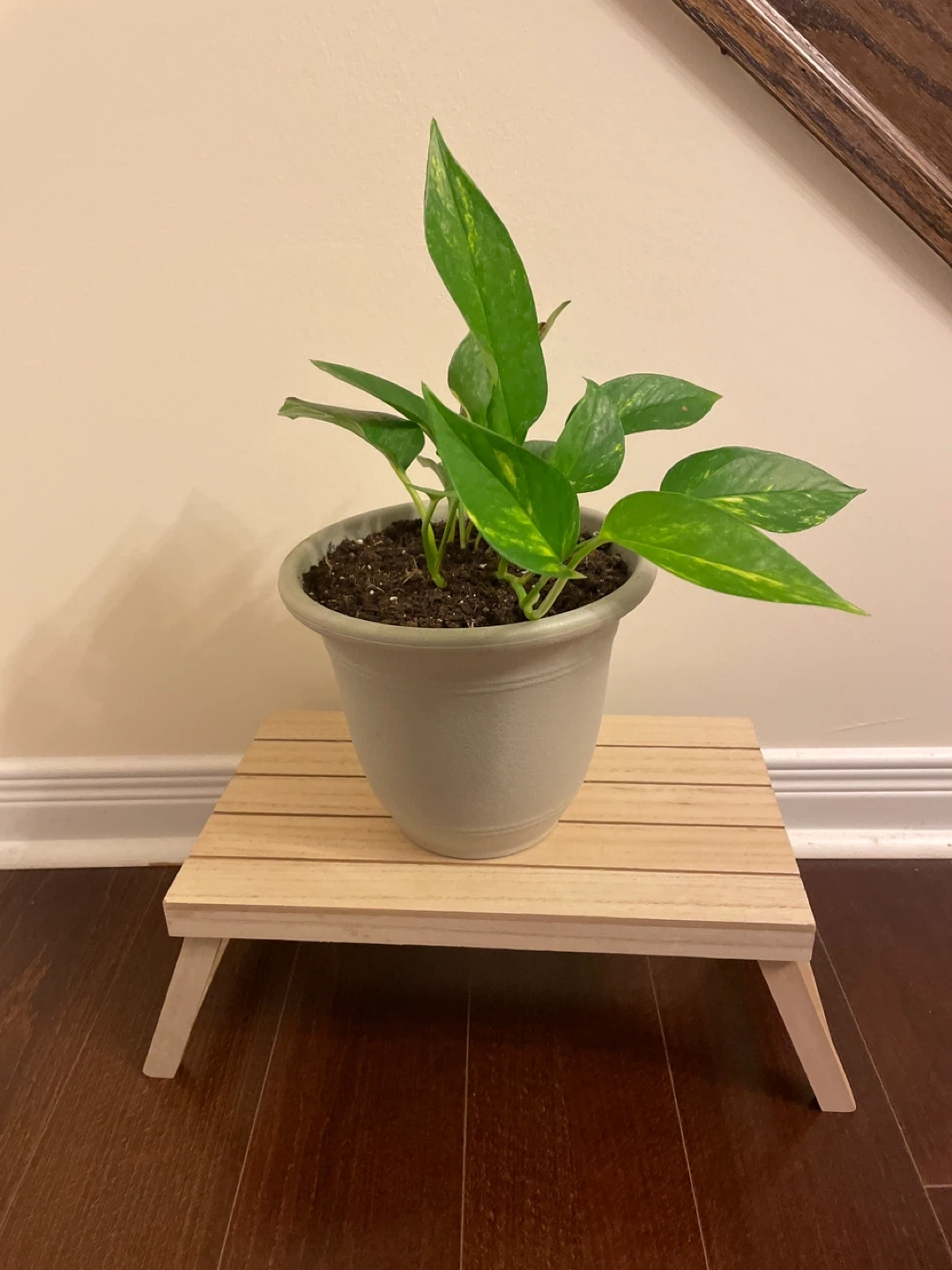 1000+Selling a cute pothos plant with little wooden folding plant stand! It's perfect for adding a touch of rustic charm to your home. Smoke free and pet free home.