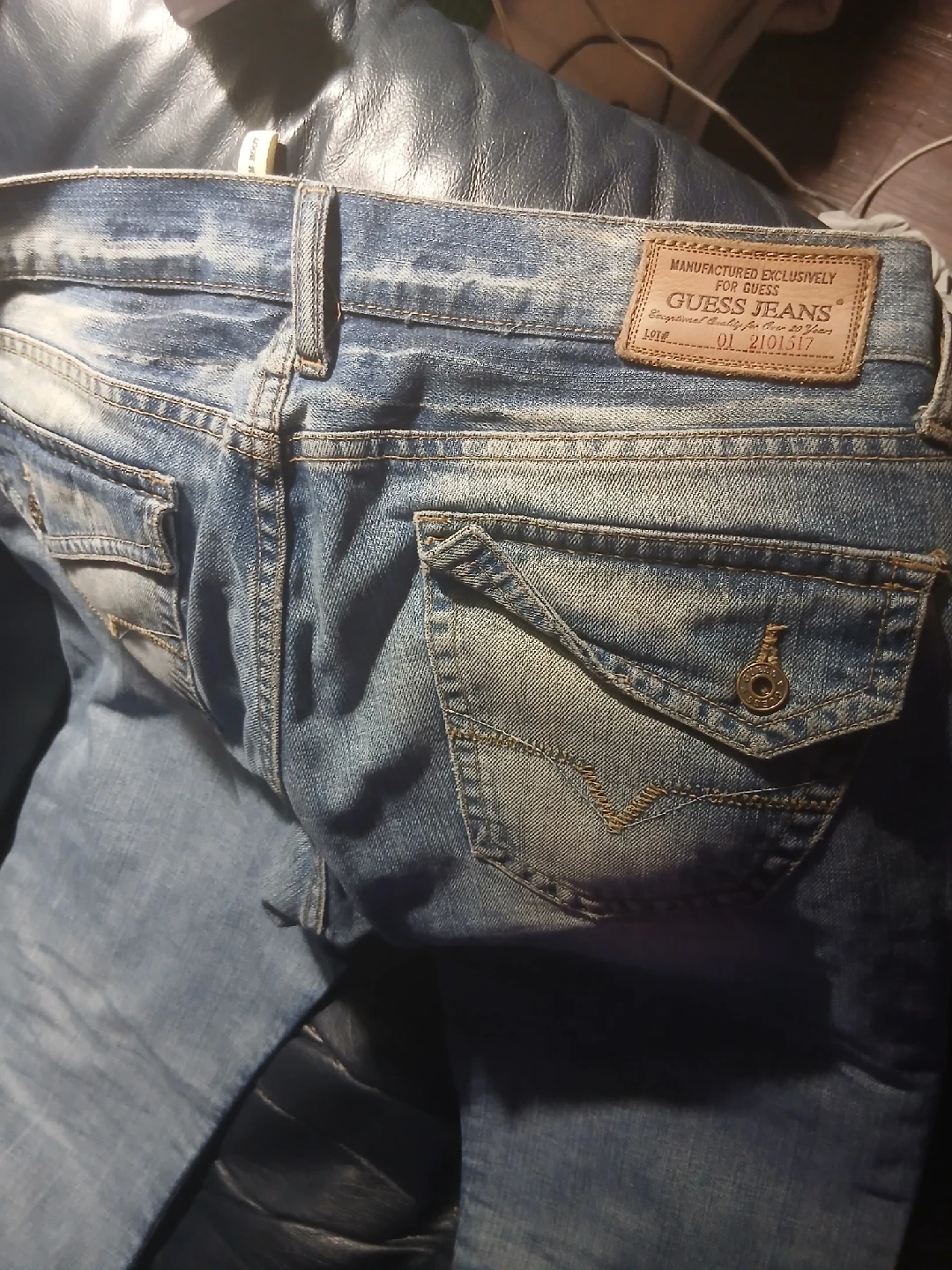 60Selling a pair of Guess jeans in size 33! They're in good condition and ready for a new home. The denim has a nice wash and the pockets have a unique design