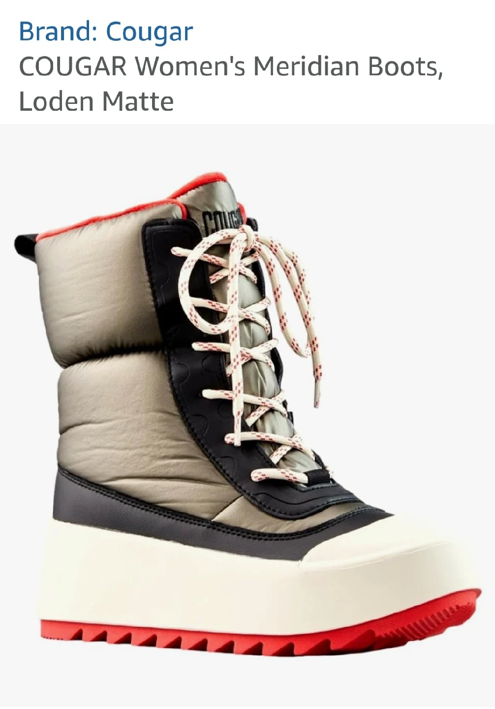 60Selling a brand new pair of COUGAR Women's Meridian Boots in Loden Matte! These boots are in excellent condition and ready for a new home. They feature a unique tread design and a stylish look.