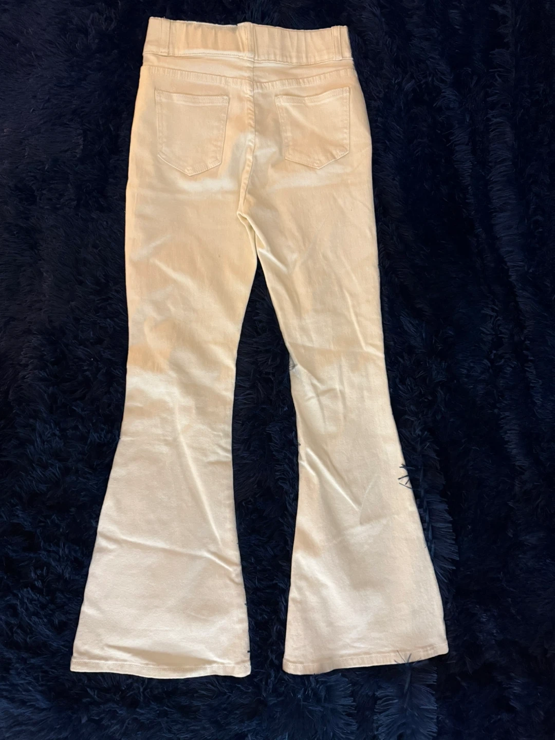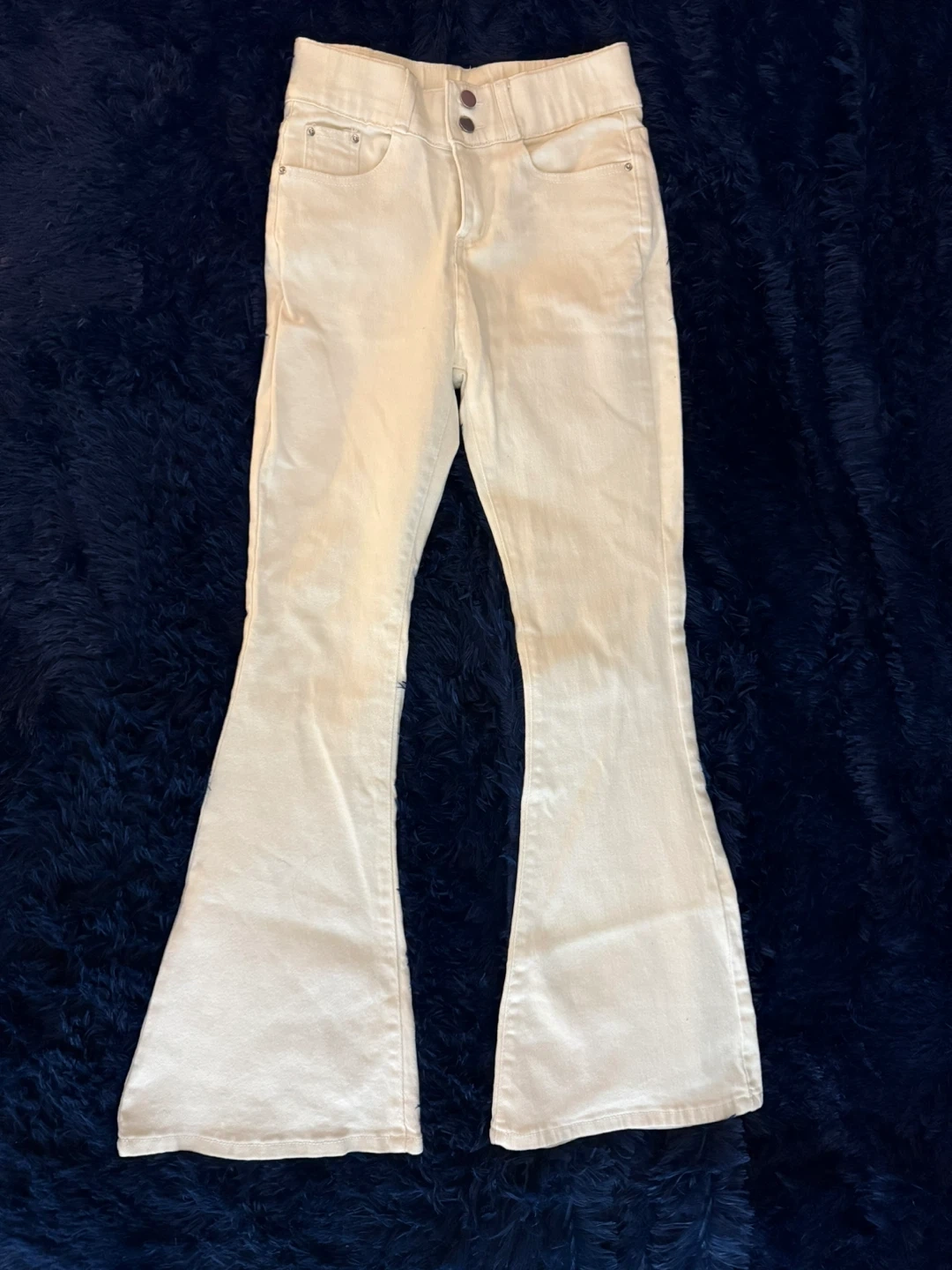 248Cream coloured flare jeans, perfect for a retro look! They're in great condition and ready for a new home