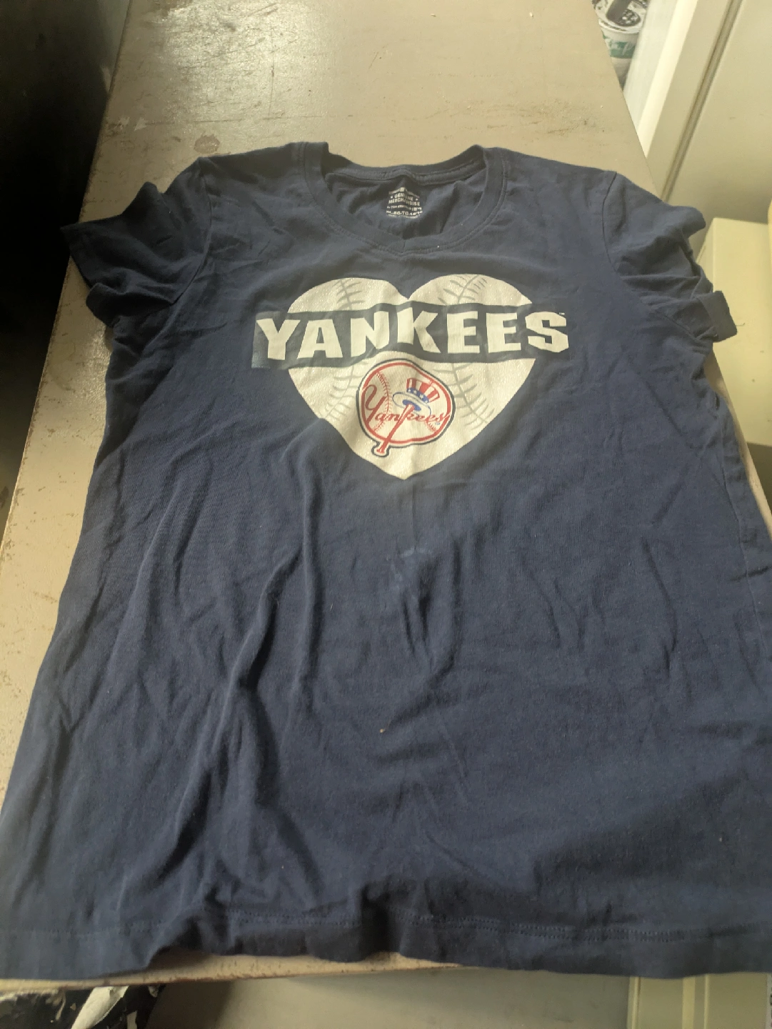 164Selling a Yankees T-shirt. It is a navy blue color with a heart design on the front. This shirt is perfect for any Yankees fan! Woman XL 14/16