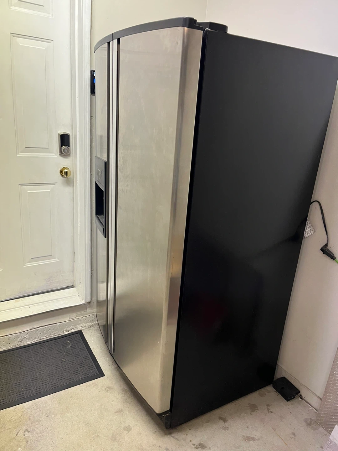 Selling a side-by-side refrigerator with a stainless steel finish. It's in good working condition and ready to keep your groceries cold!
