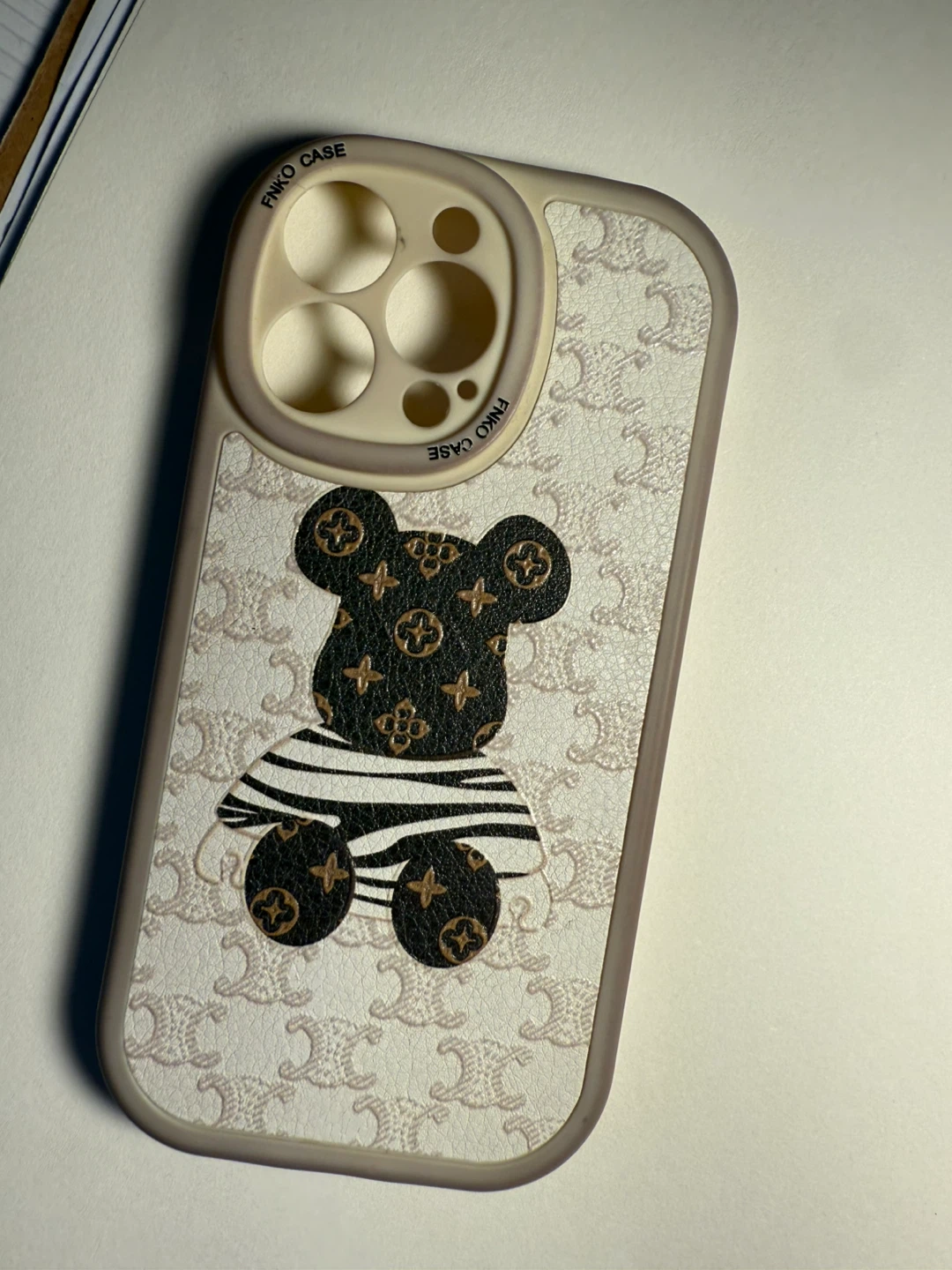 Selling a few iPhone cases! There's a designer-style case with a cute bear design, and a classic checkerboard pattern case. They're in great shape and ready for a new phone to protect!