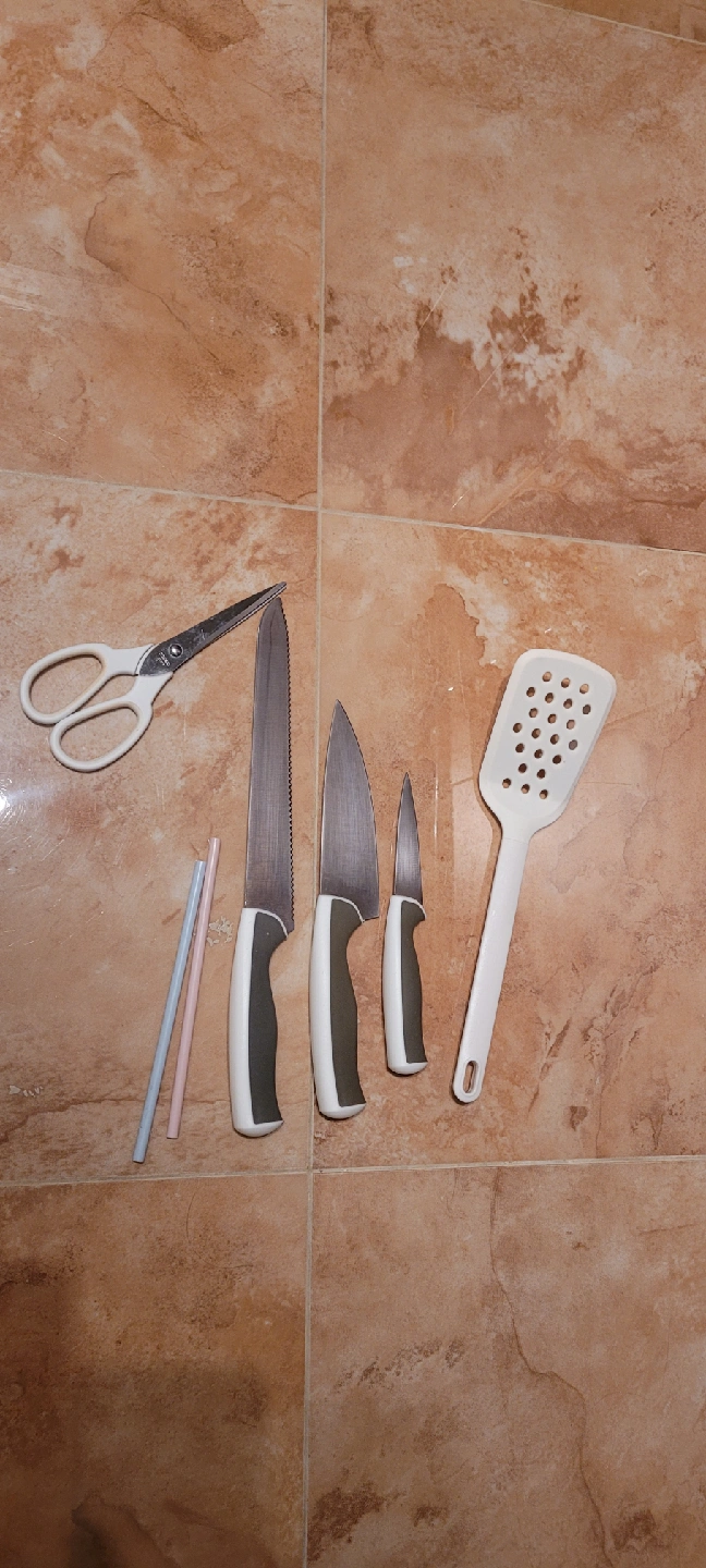 1000+Selling a kitchen utensil set that includes a variety of knives, a pair of scissors, and a spatula. Perfect for equipping a new kitchen or replacing old tools! Yonge and Finch area