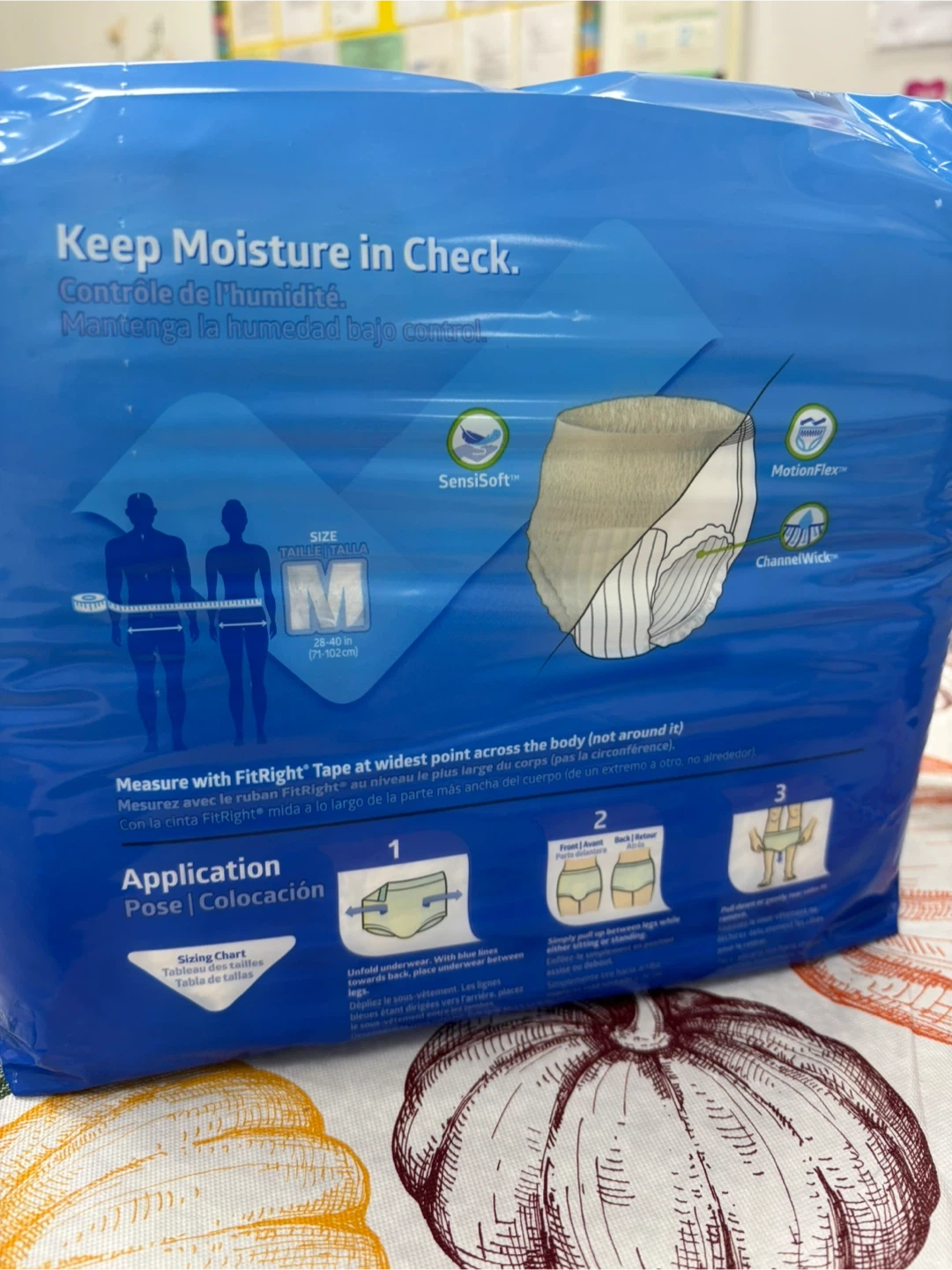 Selling a pack of FitRight Underwear in size M. They are designed for improved fit and comfort with MotionFlex technology. The fabric is gentle on the skin, thanks to SensiSoft. Each underwear also features ChannelWick for fluid distribution. Size M fits 28-40 inches (71-102 cm)