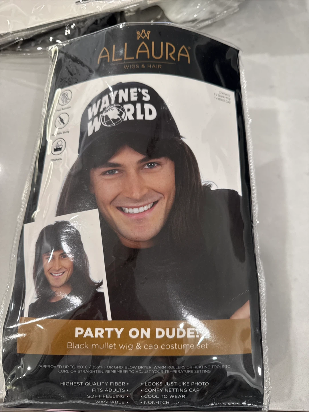 Get ready to party on, dude! This Allaura Wayne's World costume set includes a black mullet wig and a matching cap. The wig is made of high-quality fibre that looks just like the photo and feels soft. The cap has a comfy netting and is cool to wear. Fits adults and is washable