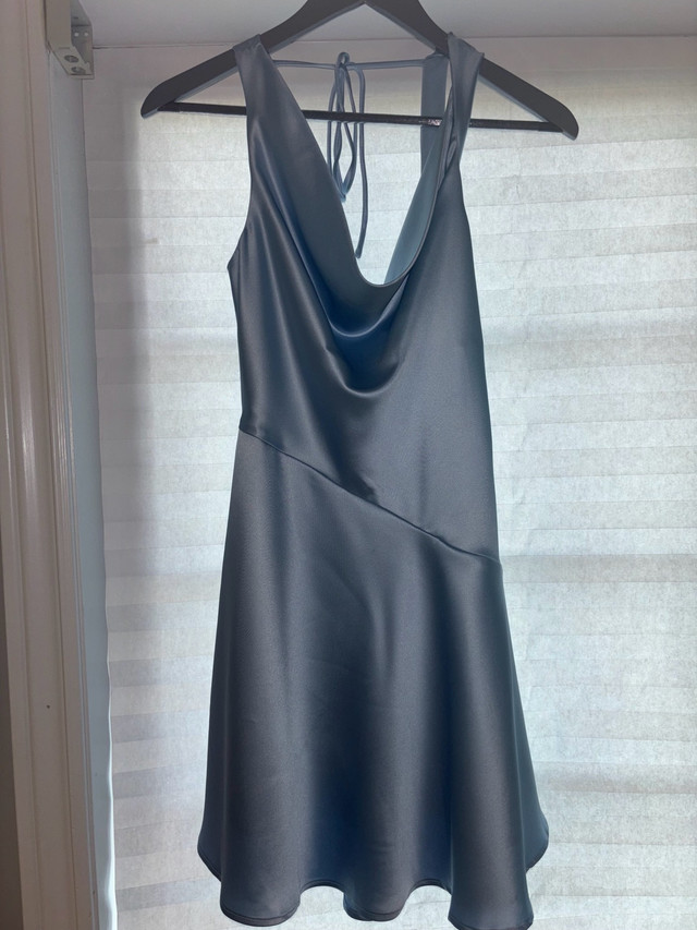 Beautiful satin blue dress from Honey, perfect for a night out or special occasion. The dress is in excellent condition and features a flattering silhouette. The material is soft and comfortable against the skin. Only worn once. Specifications: - Brand: Honey - Colour: Blue - Material: Satin - Size: Small